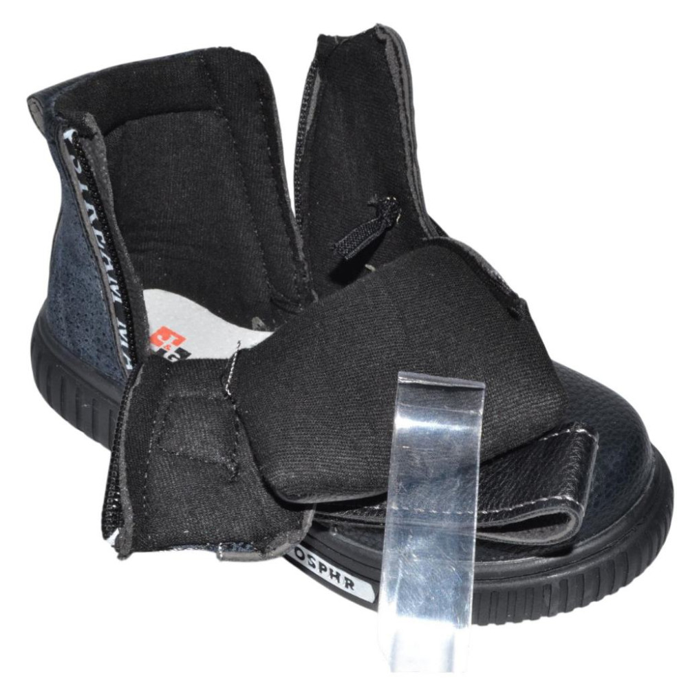 Стрейчевые декоративные шнурки и липучка хорошо зафиксируют ножку ребенка.