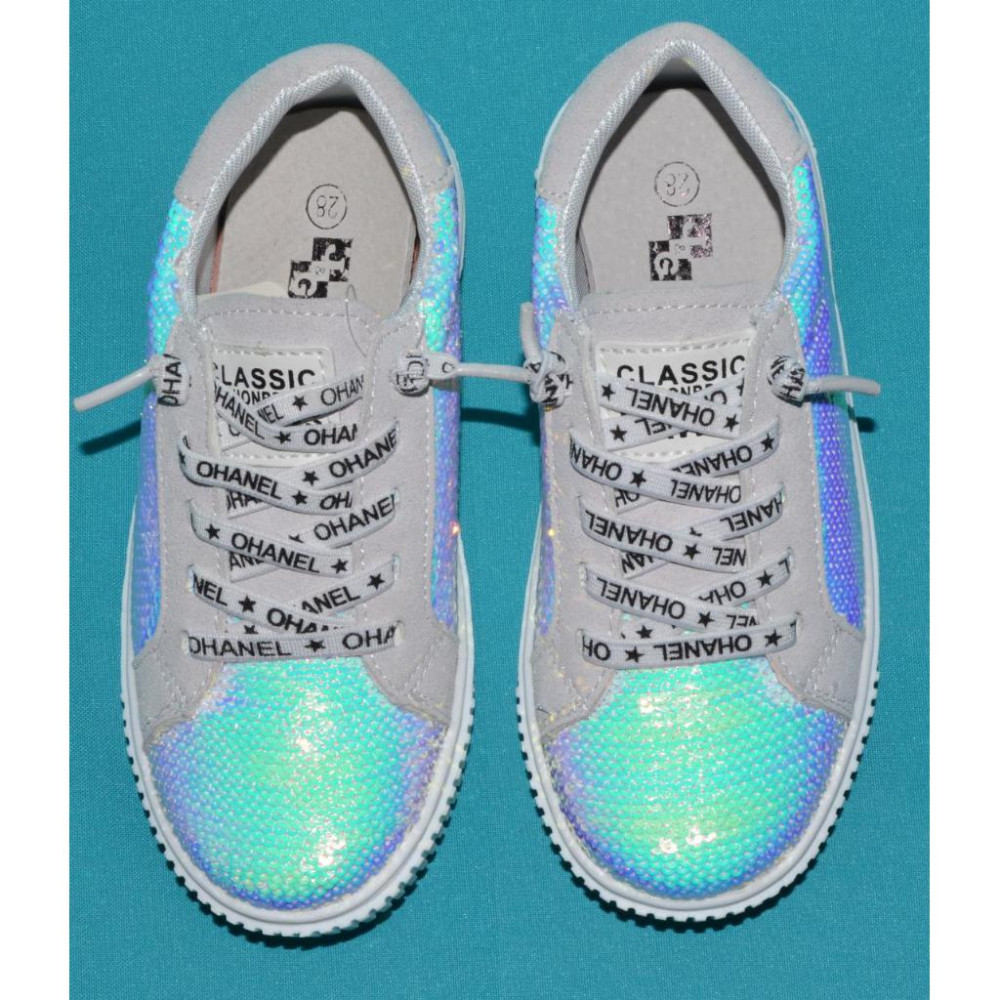 Верх - шкірозамінник і текстиль, розшитий паєтками, мають властивість хамелеон (змінюють колір залежно від кута падіння світла).