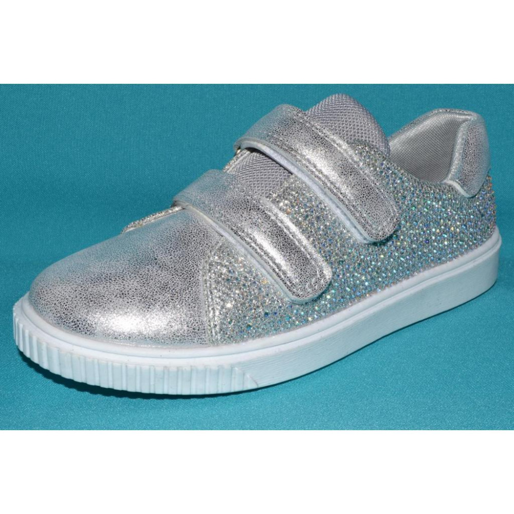 Верх - шкірозамінник і текстиль, прикрашений стразами, всередині - шкіряна устілка з супінатором.