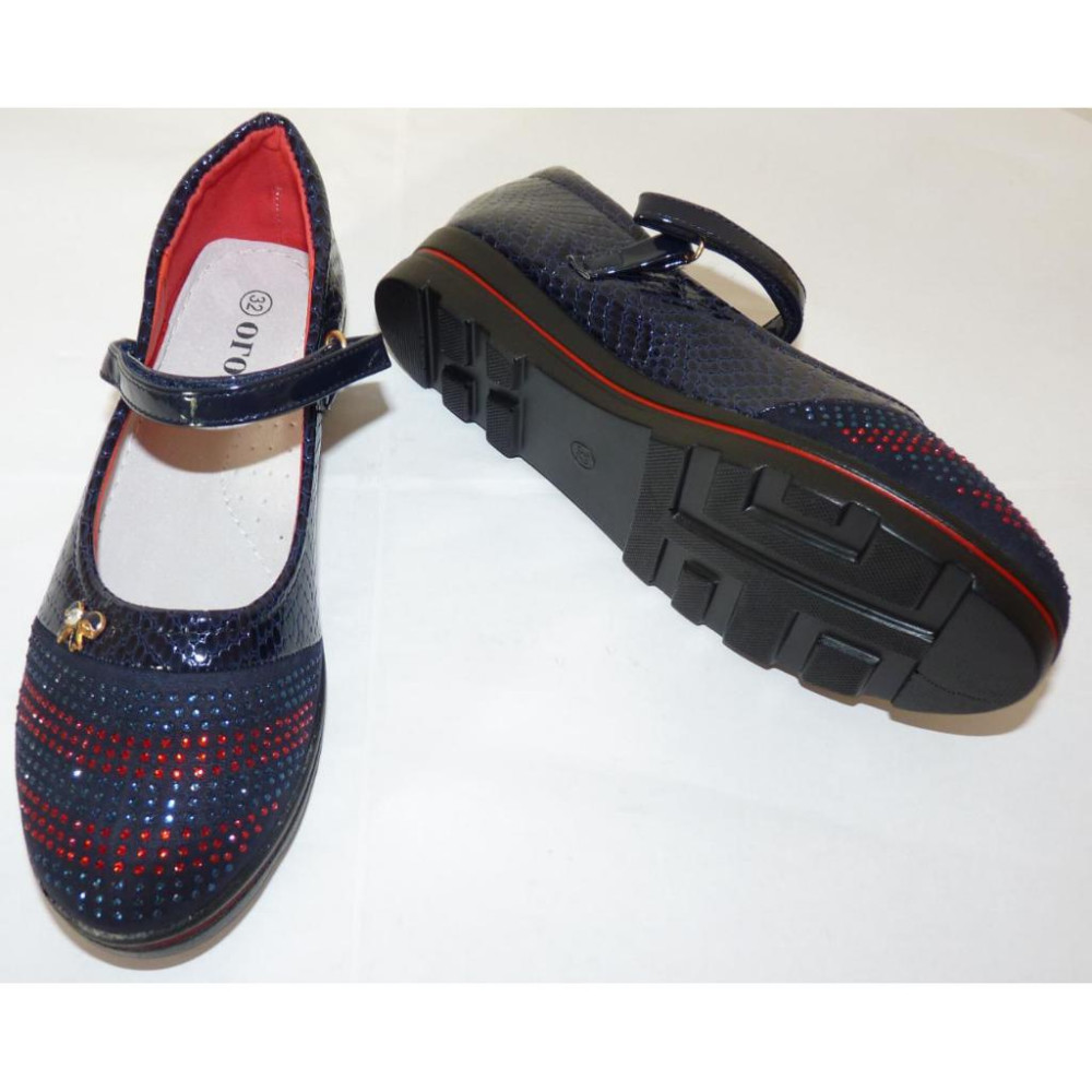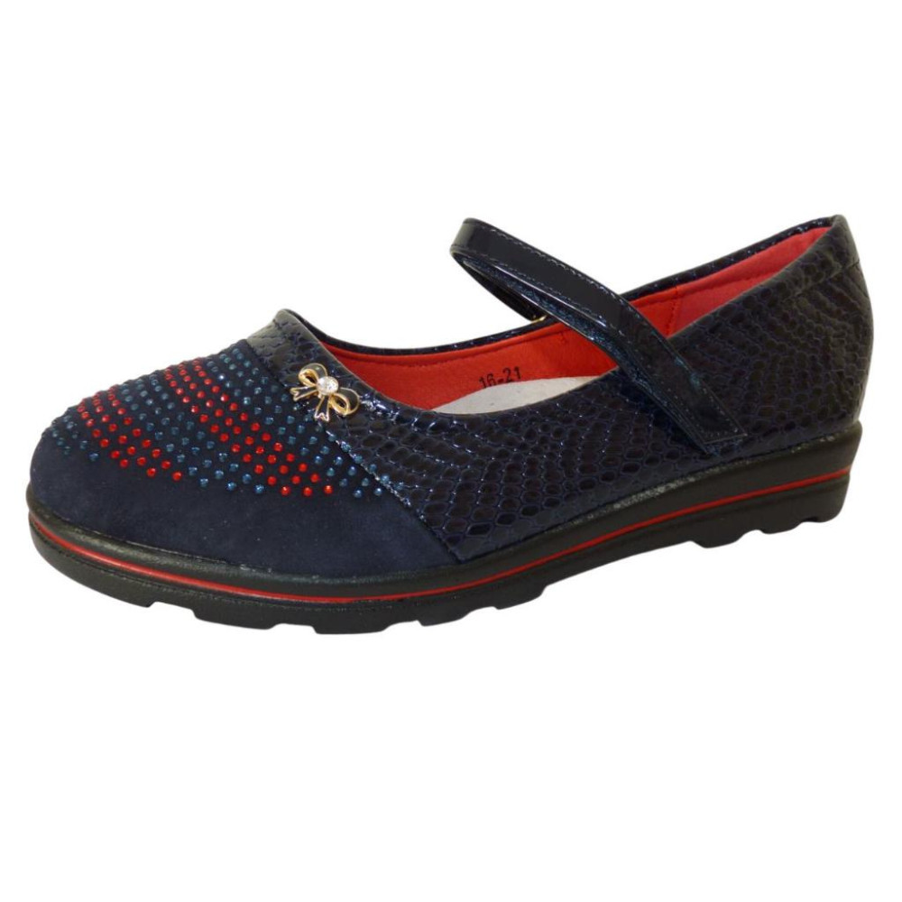 Цвет – темно-синий, подошва черная, стразы красные и синие.