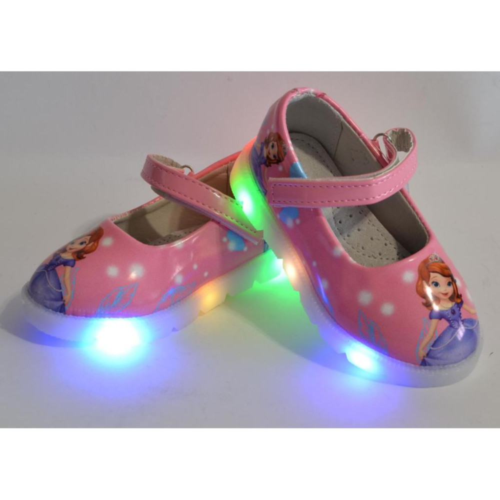 При ходьбі підошва туфельок світиться різнобарвними вогниками. Мигалки розташовані по зовнішній боковій поверхні підошви.