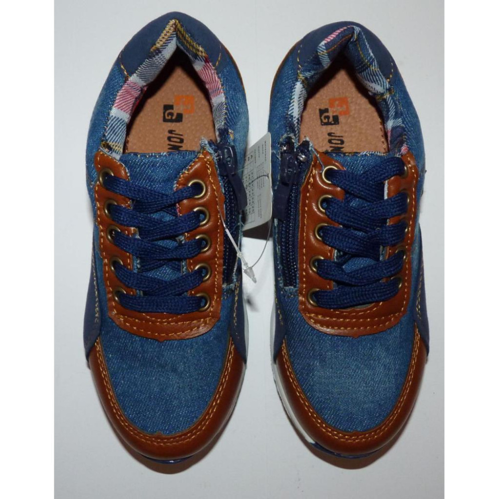 Колір - комбінований (синій джинс, рудо-коричневі і темно-сині вставки).