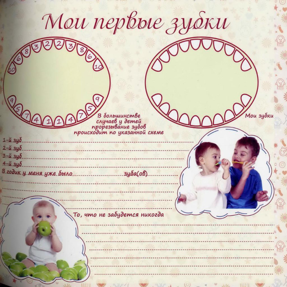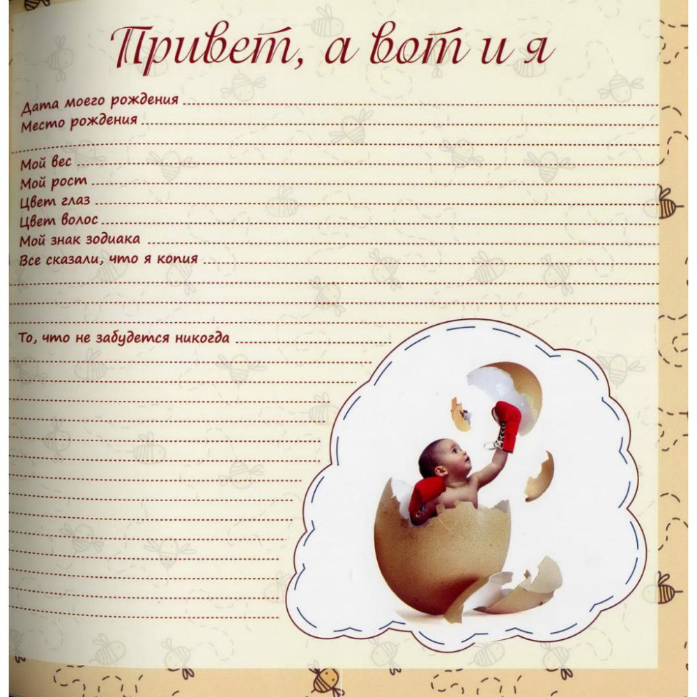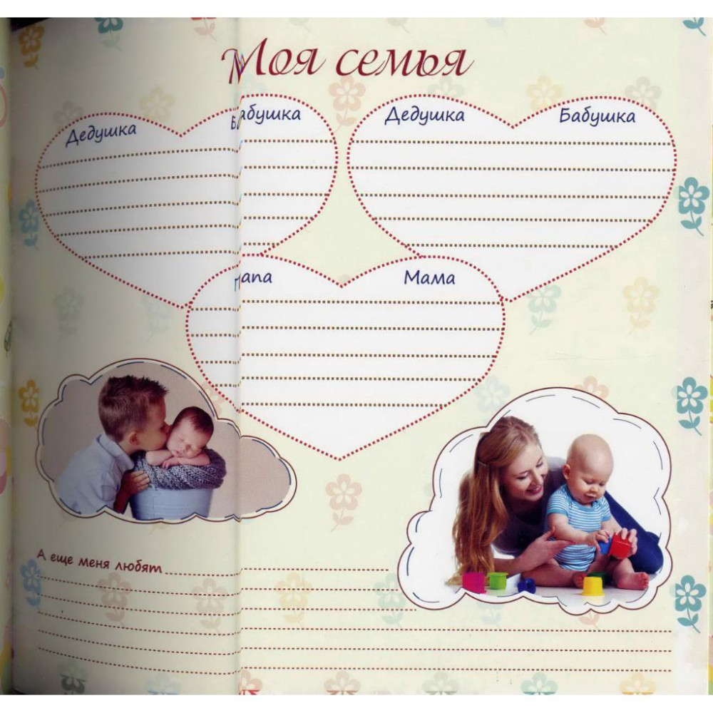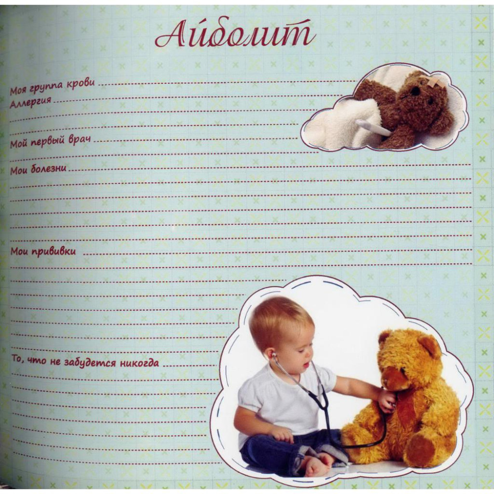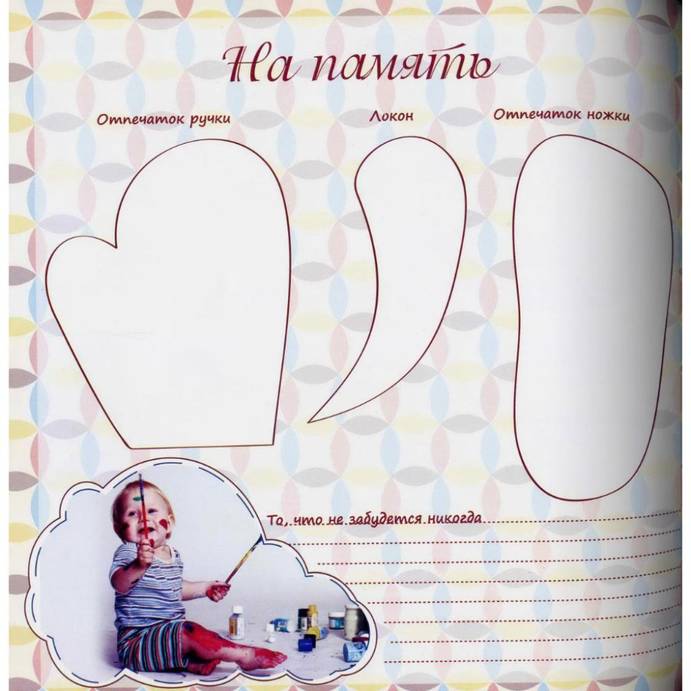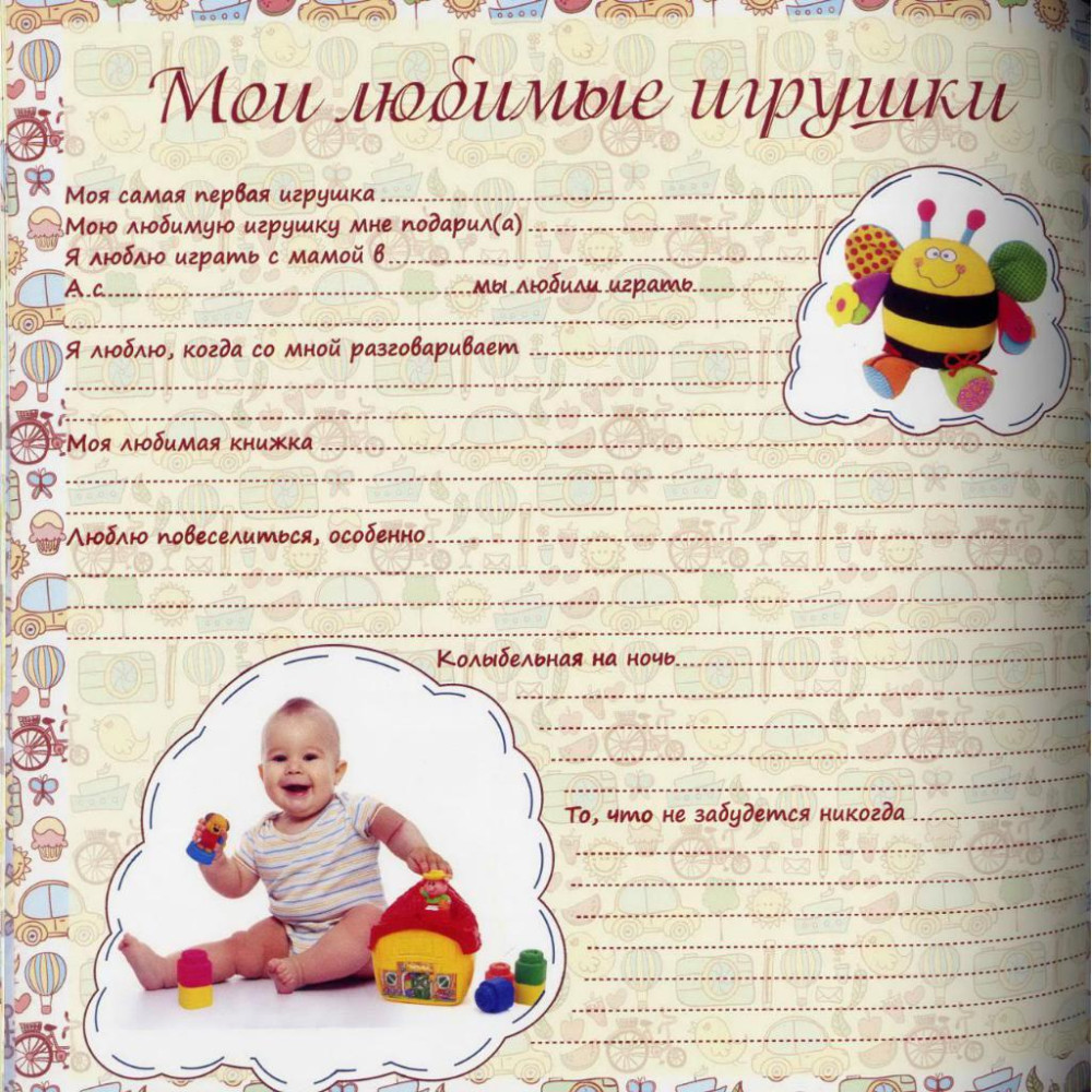 Каждая страница с фотографиями чередуется анкетами с вопросами о ребёнке на следующие темы: