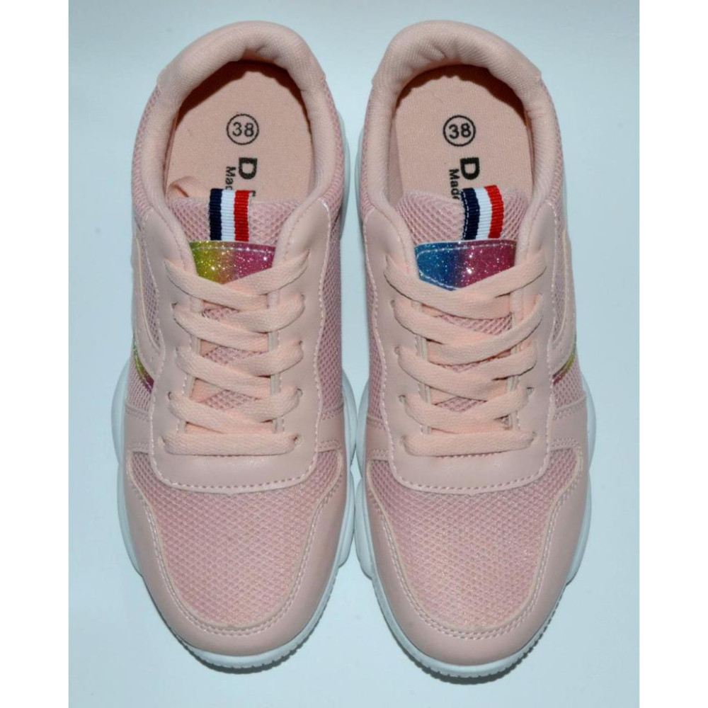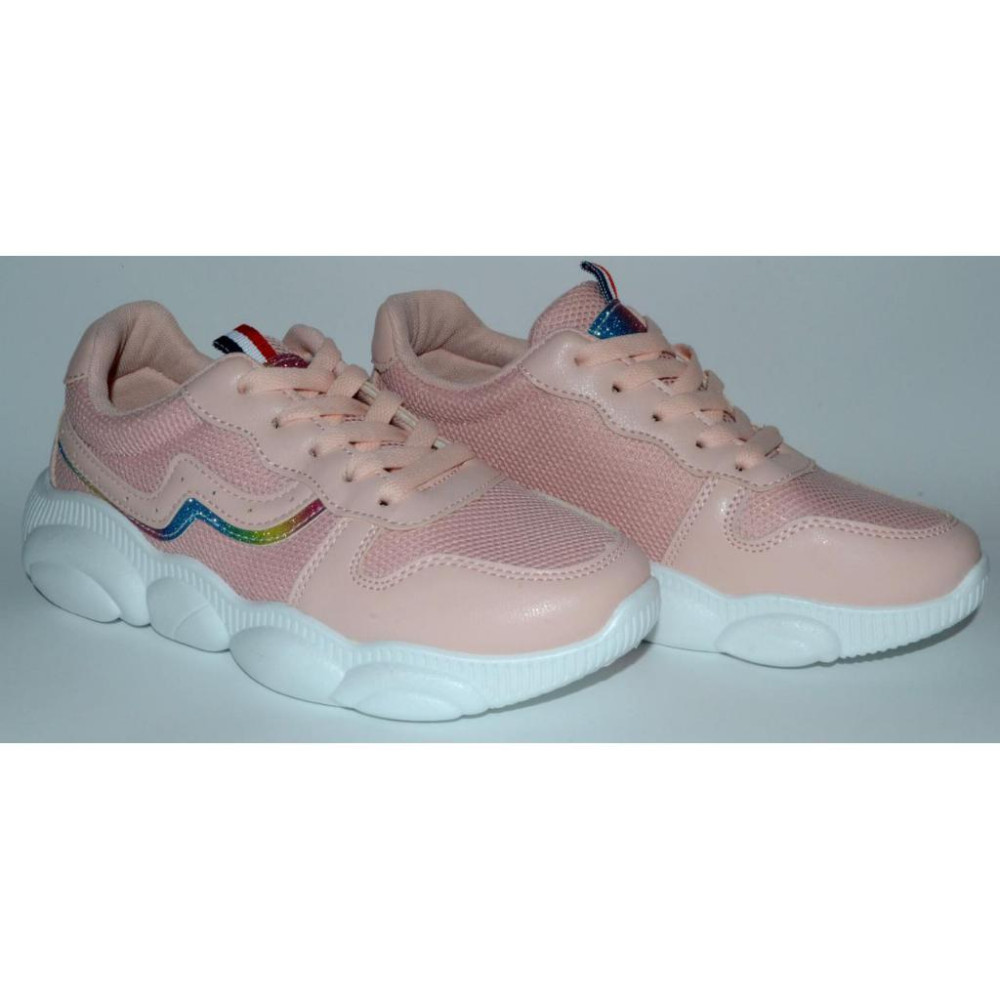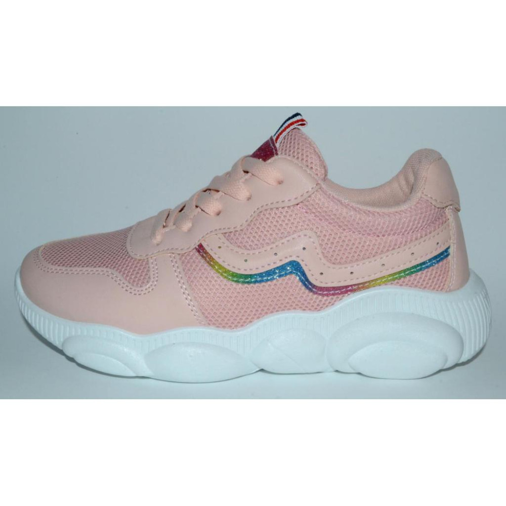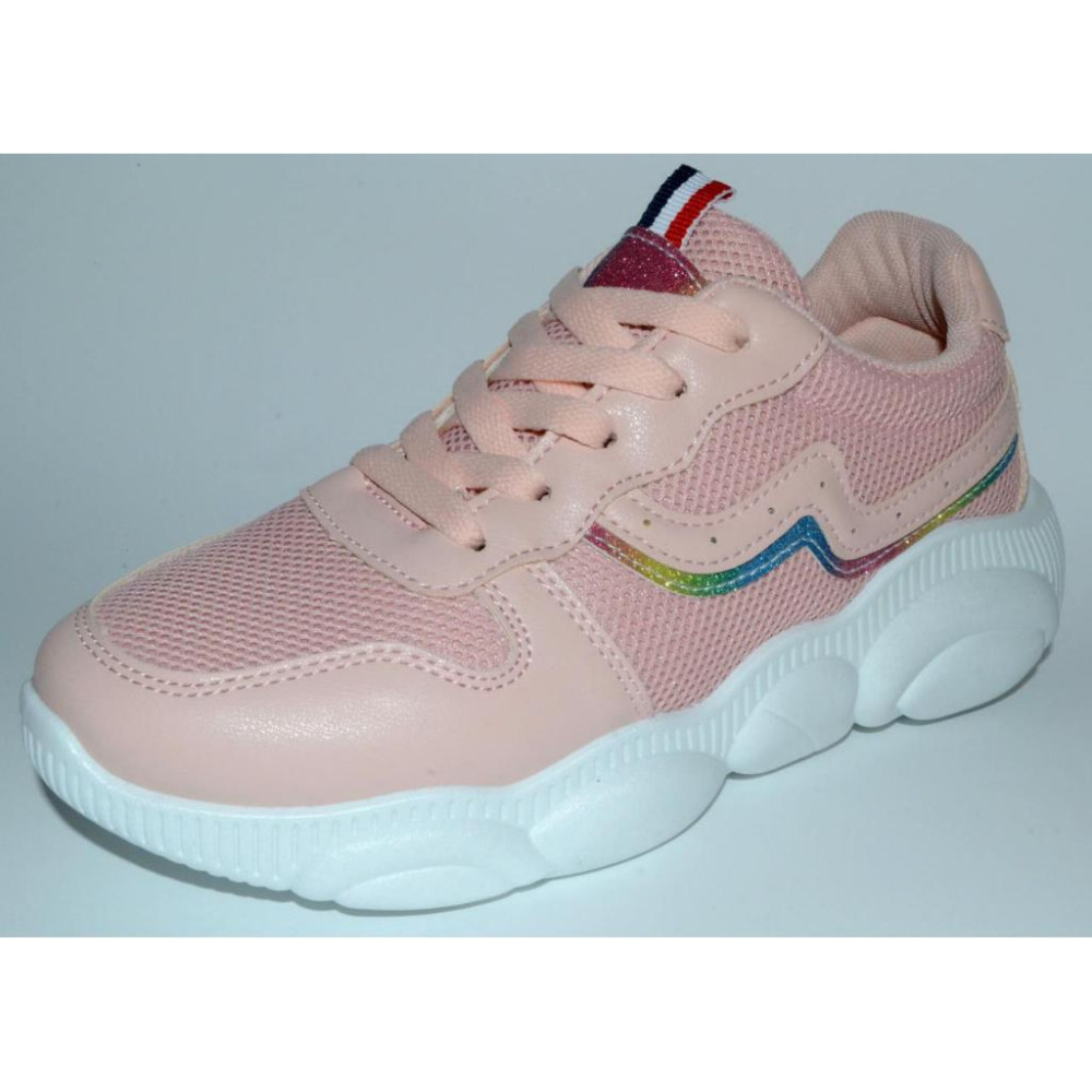 Основний колір - "рожева пудра", підошва біла, різнокольорові райдужні елементи.
