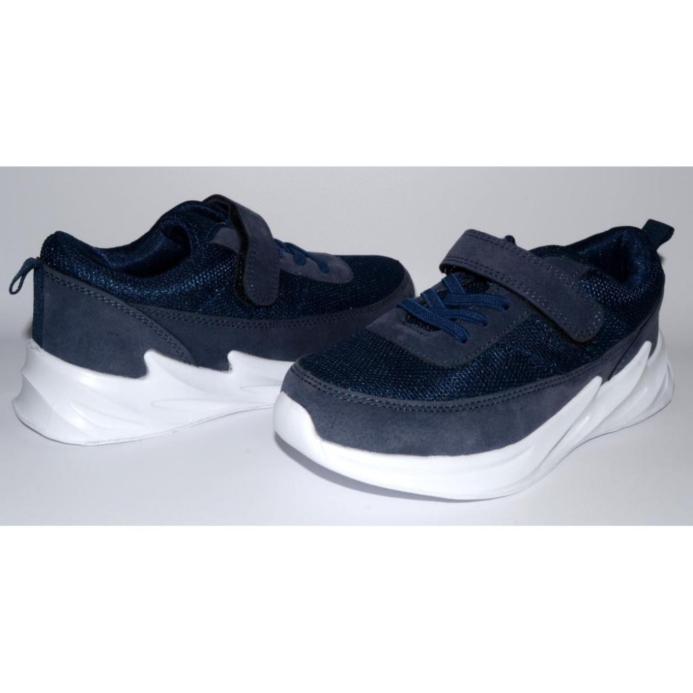 Колір - комбінований (синьо-сірий, темно-синій), підошва біла.