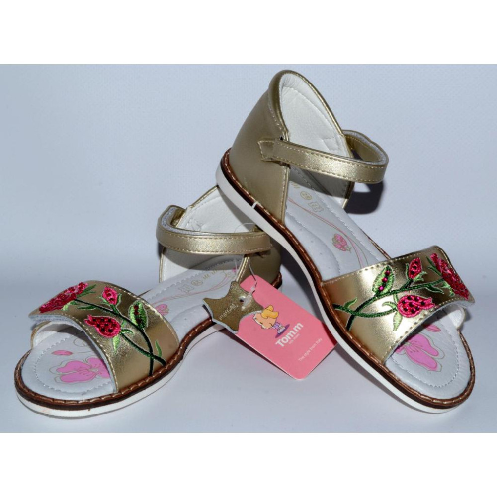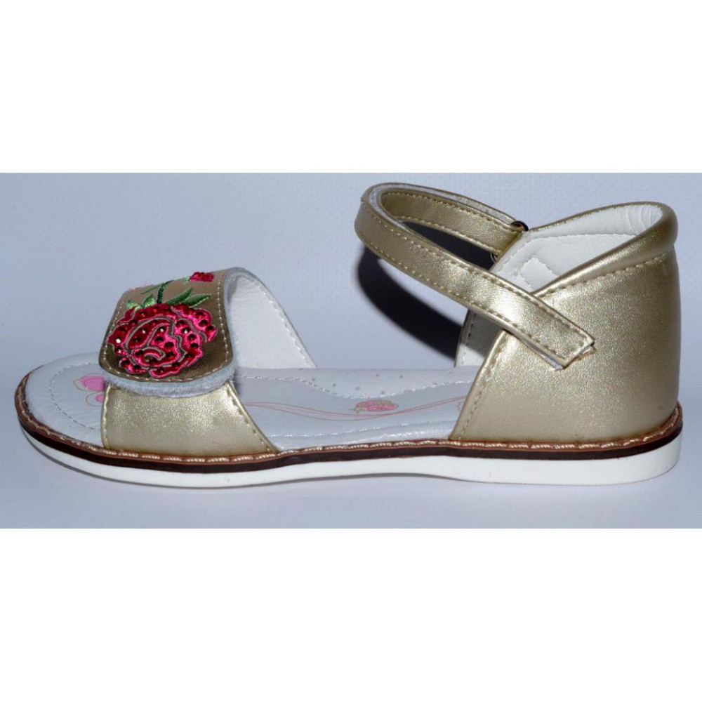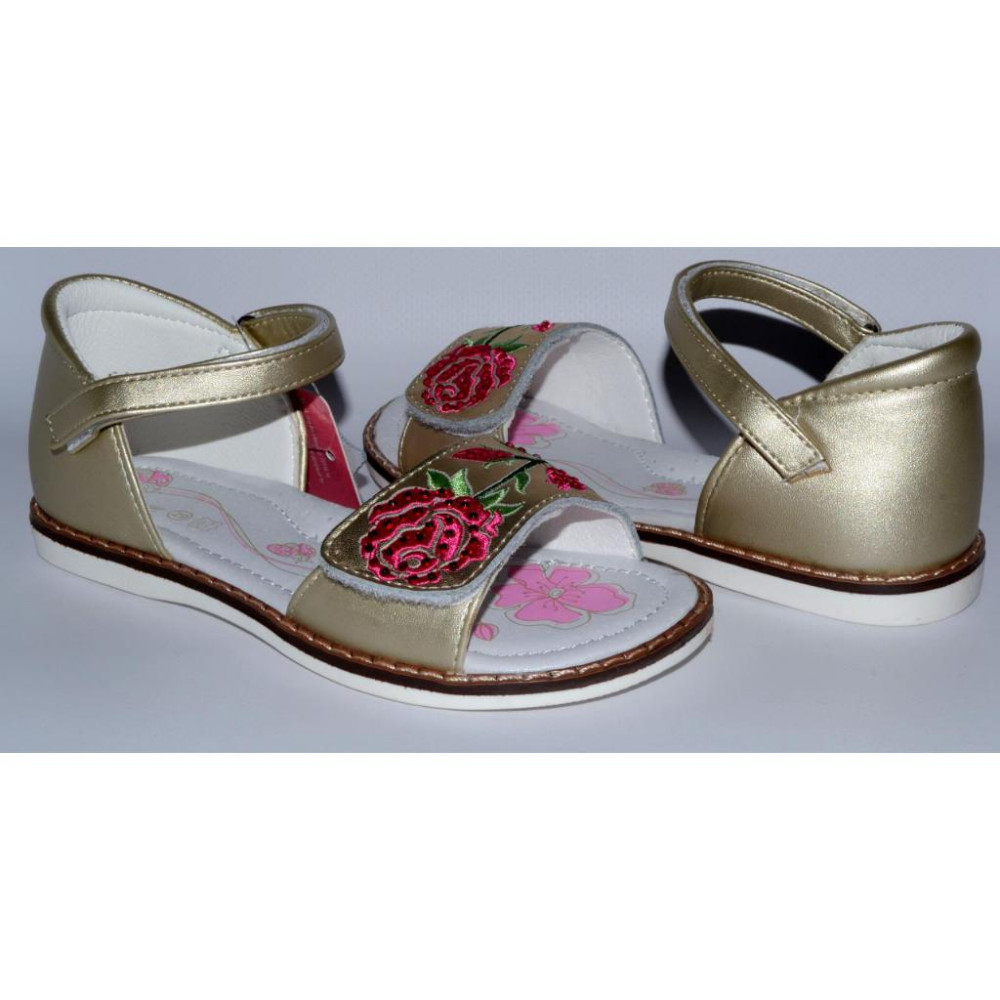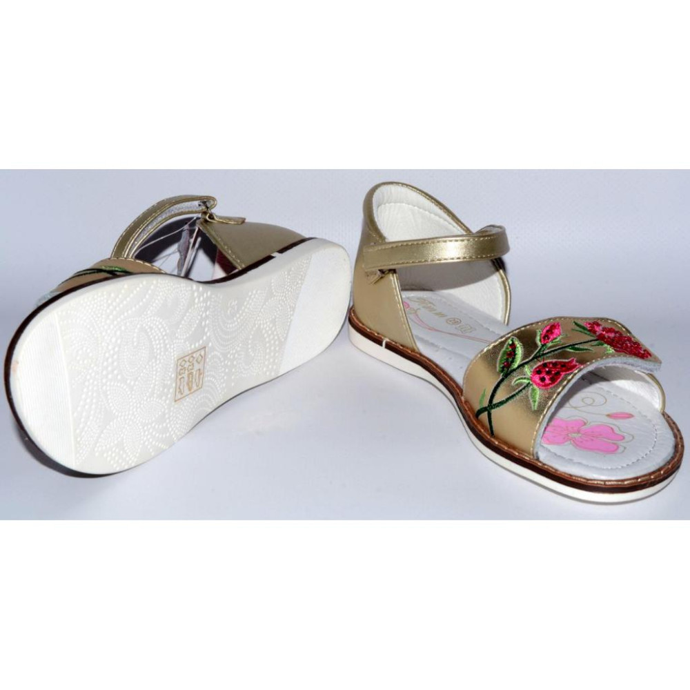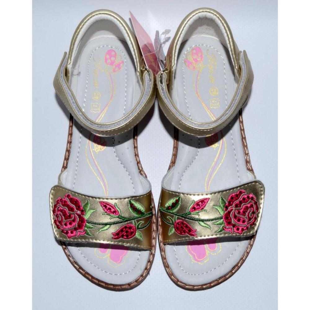 Колір - золотистий, вишивка рожевого і салатового кольорів, декоровані стразами.