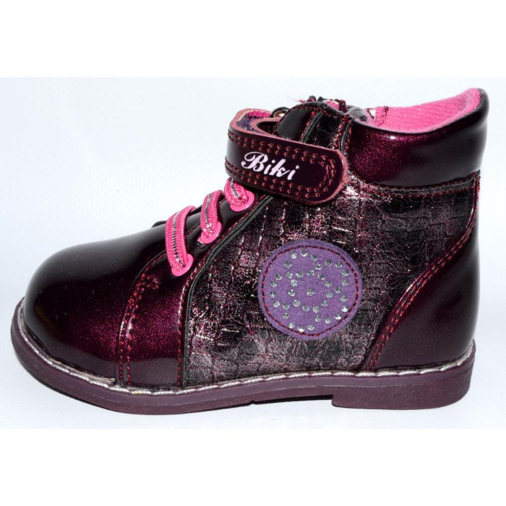 Отличная недорогая ортопедическая модель ботиночек, сочетающая в себе все необходимые компоненты для правильного развития стопы ребенка – супинатор, жесткий задник и каблук Томаса.