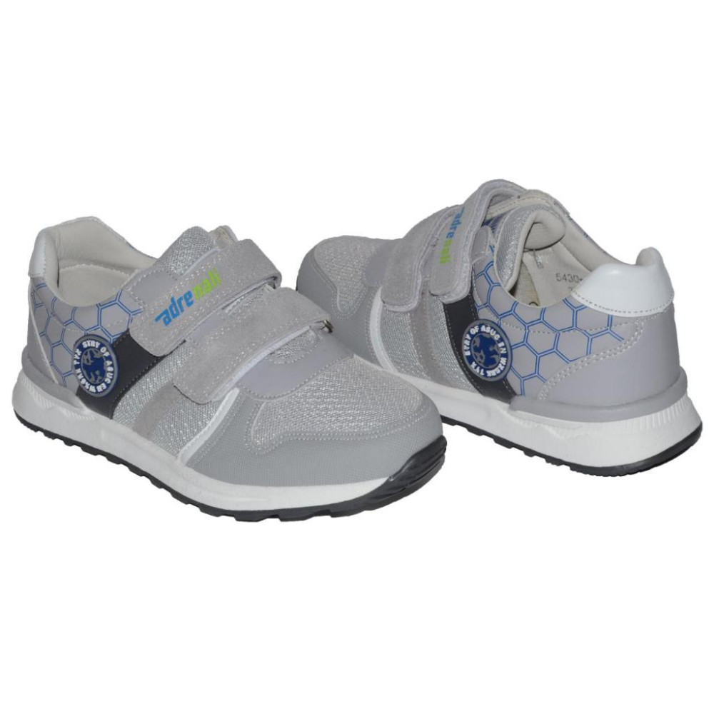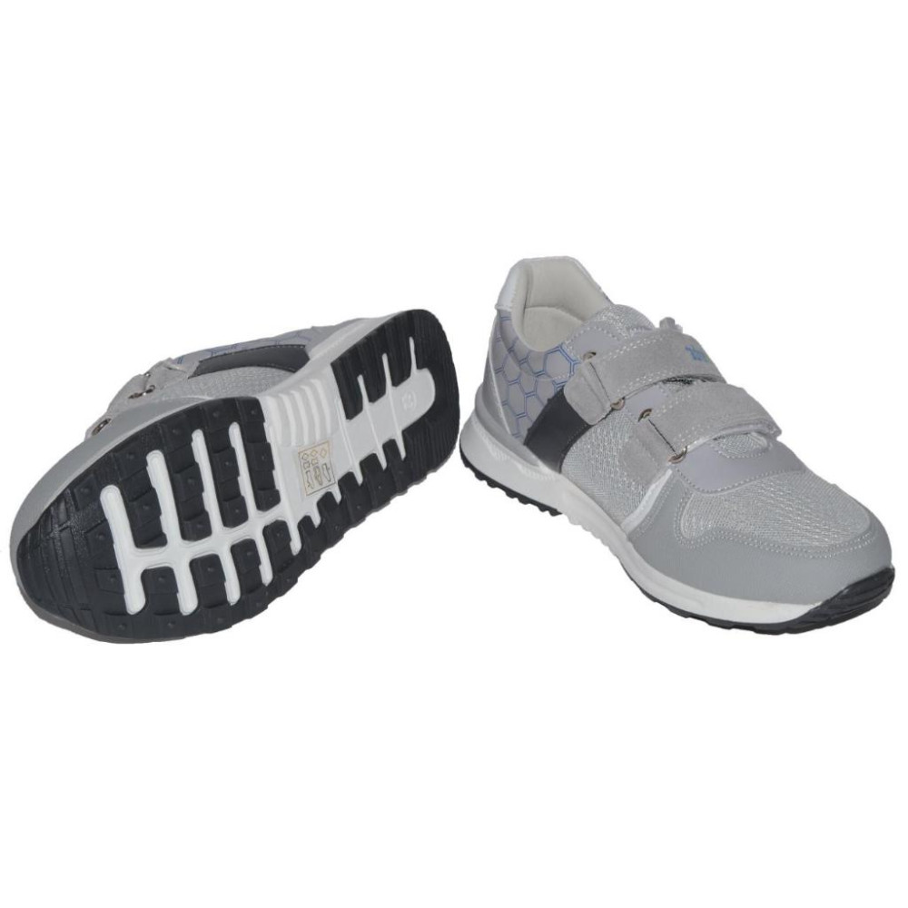 Верх - комбіновані матеріали (мікрофібра, шкірозамінник, липучки шкіряні), всередині - устілка з супінатором.