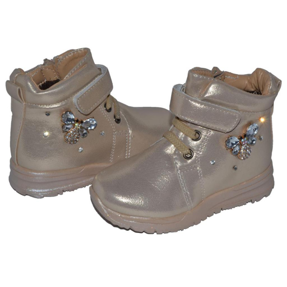 Цвет - золотисто-бежевый. Декорированы стразами в виде бабочки.