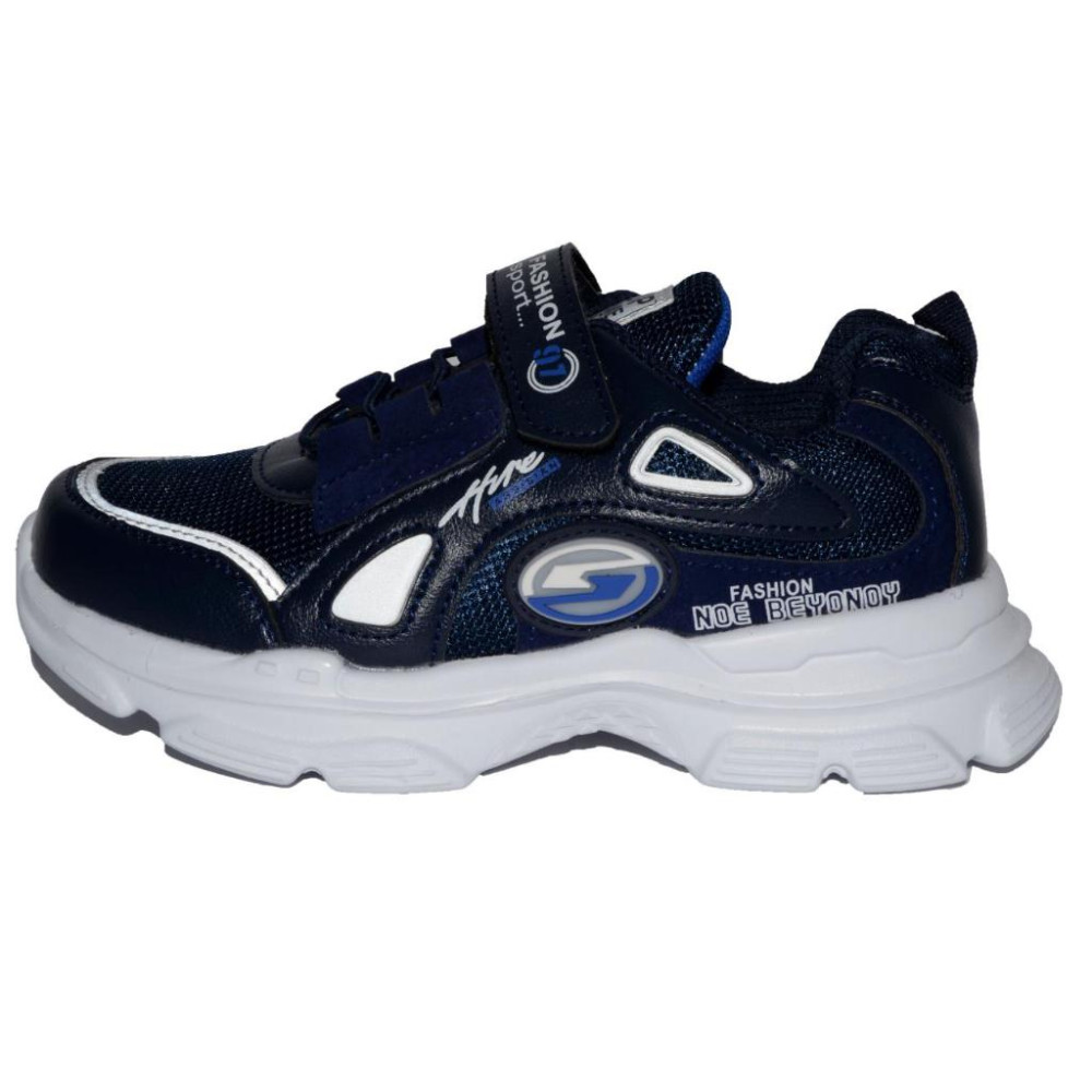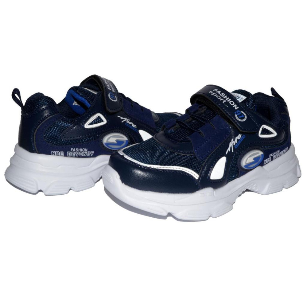 Колір - темно-синій, підошва біла. У дизайні моделі присутнє світловідбиваючі елементи.
