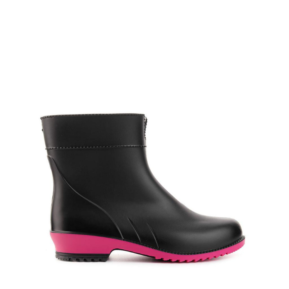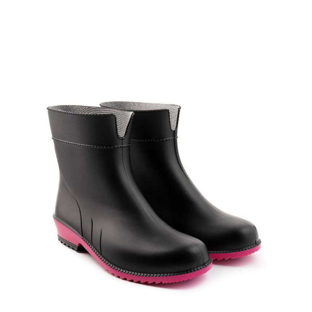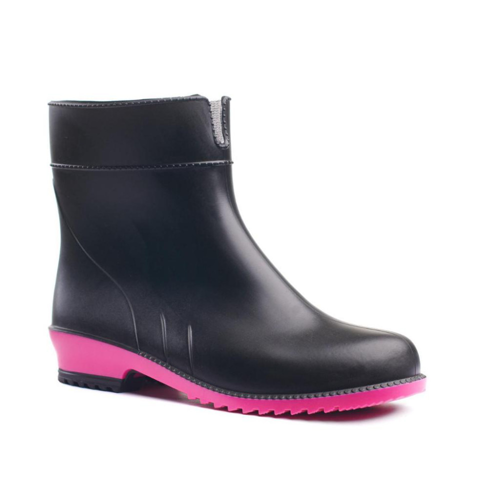 Жіночі гумові напівчоботи чорні на рожевій підошві
