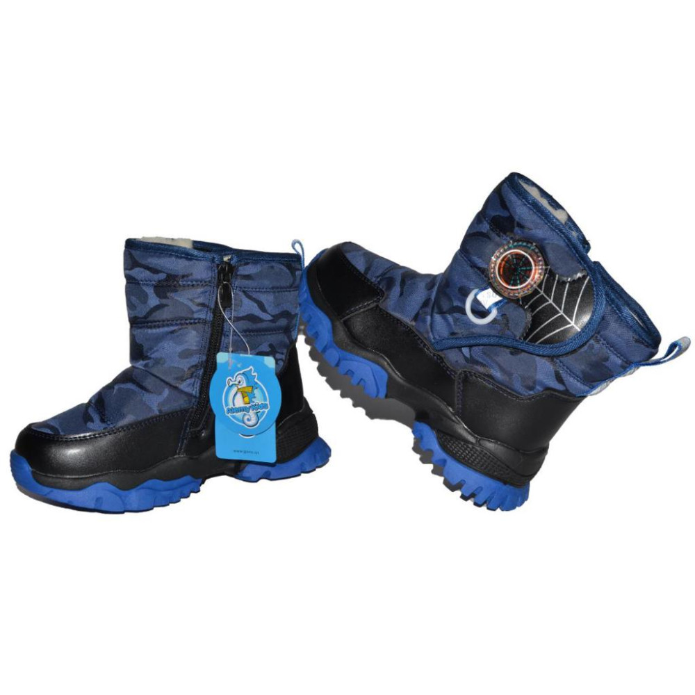 Верх – комбинированные материалы (плащевка и кожзаменитель), внутри – густой искусственный мех.