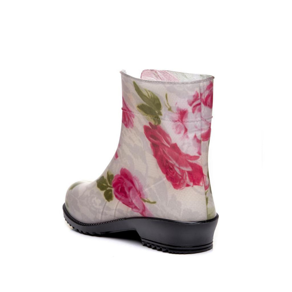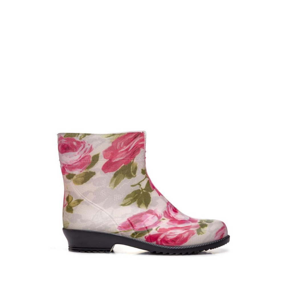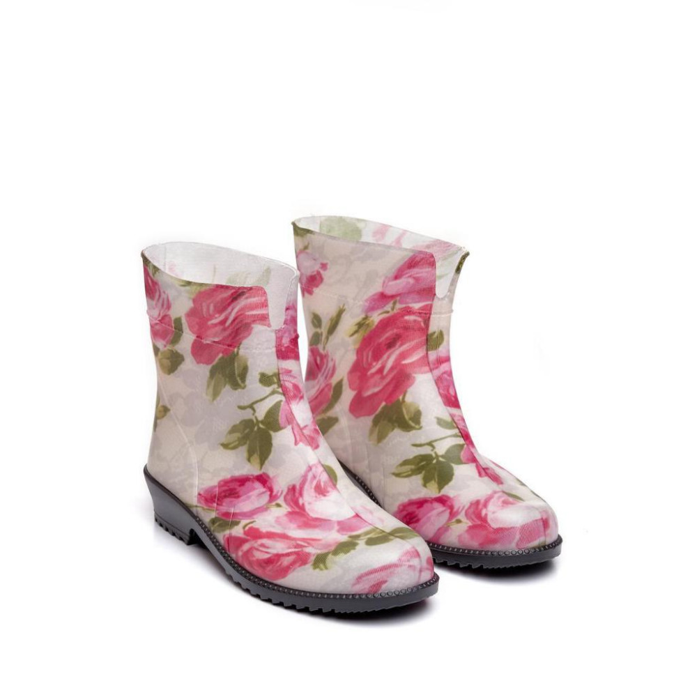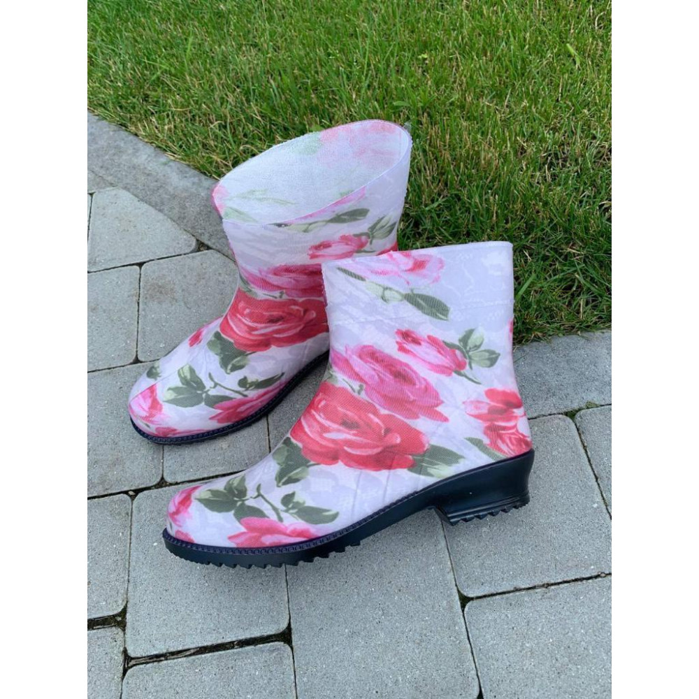 Жіночі напівчоботи гумові Троянди на білому ажурі