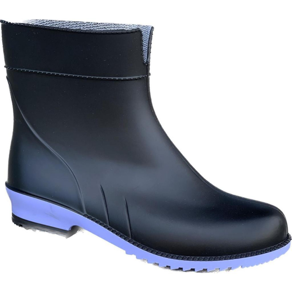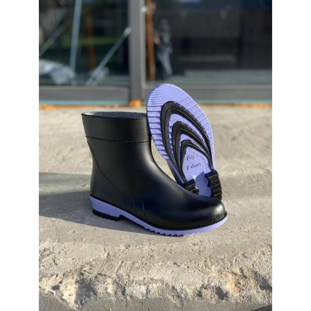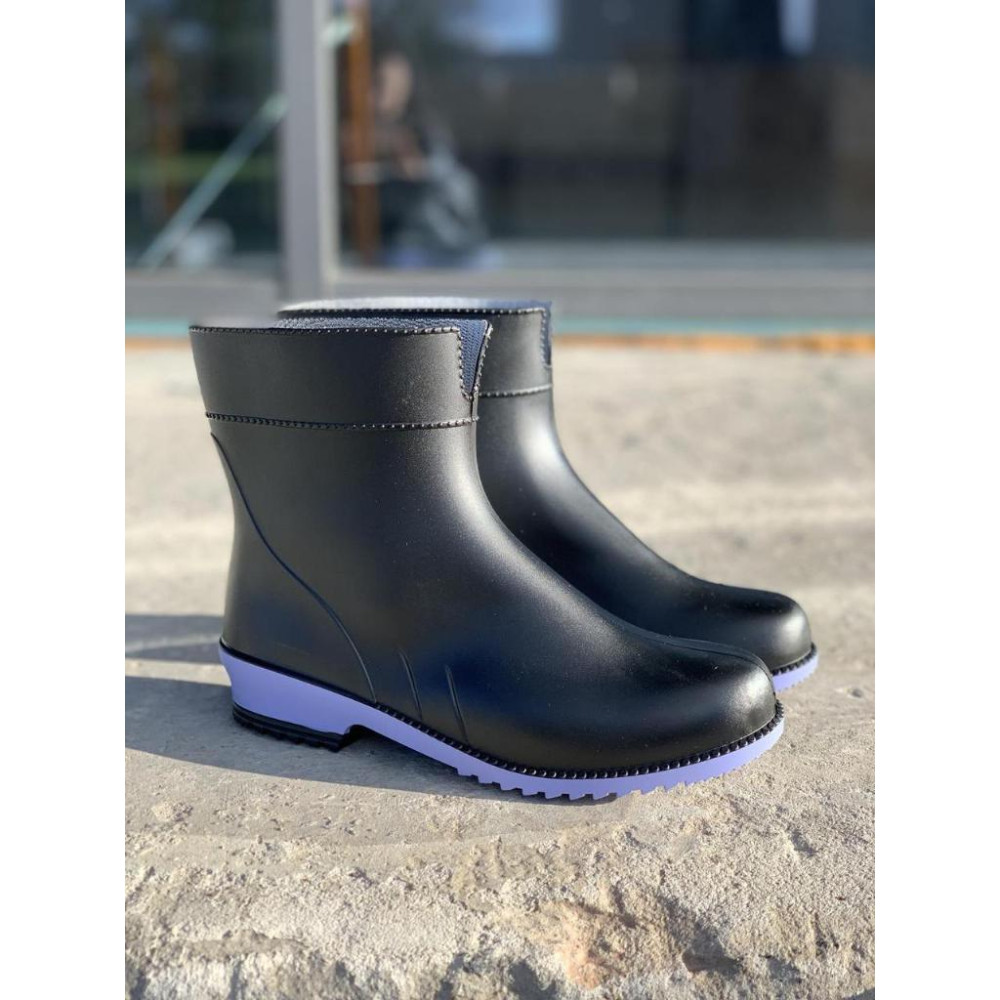 Жіночі напівчоботи гумові Чорні на ліловій підошві