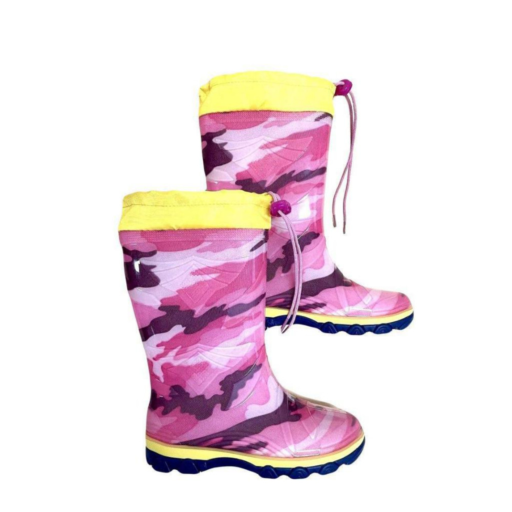 Дитячі гумові чоботи КАМУФЛЯЖ РОЖЕВИЙ із затяжками