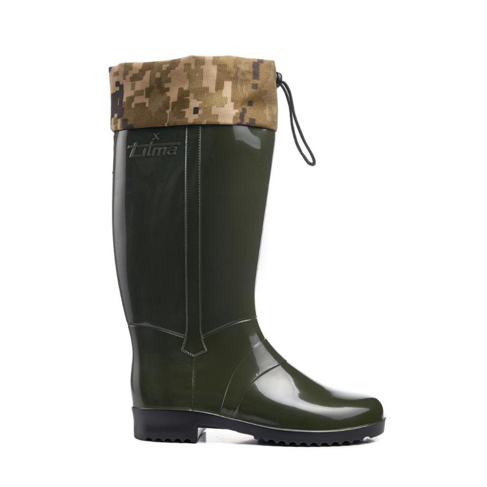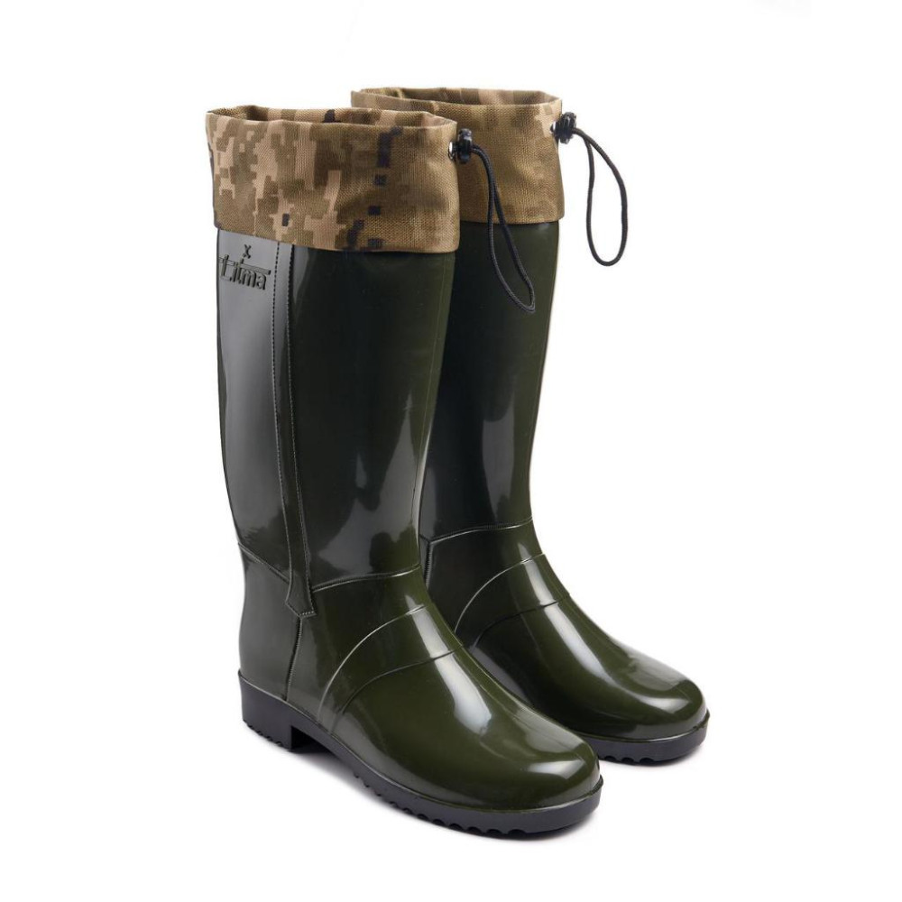 ЖІНОЧІ ГУМОВІ ЧОБОТИ - ХАКІ з затяжками