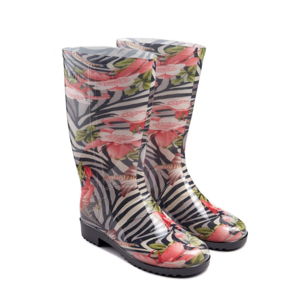 ЖІНОЧІ ГУМОВІ ЧОБОТИ - Зебра квіти червоні