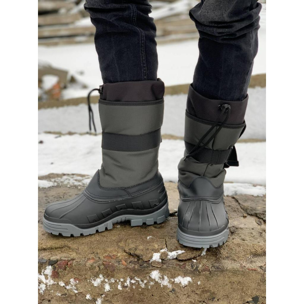 - Голенище изготовлено в комбинации двух плотных материалов (текстильного и кожзам) с водоотталкивающим покрытием.