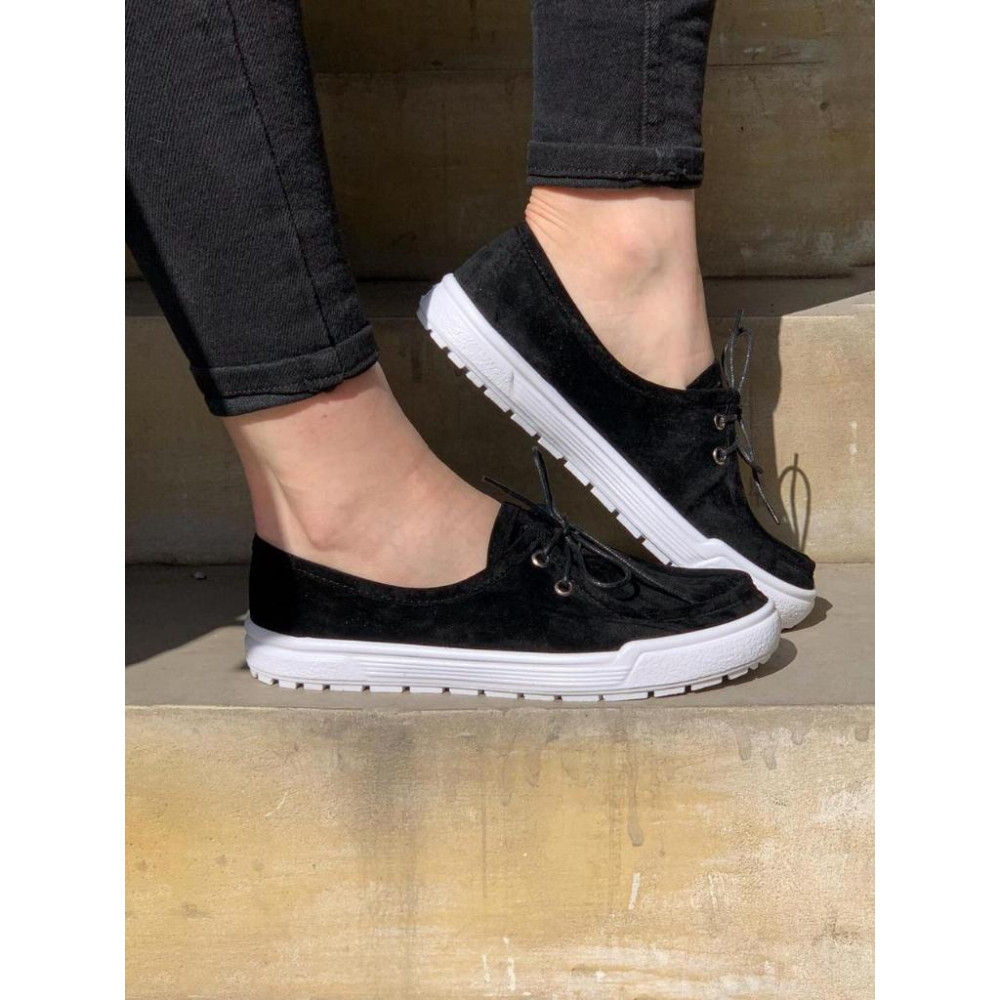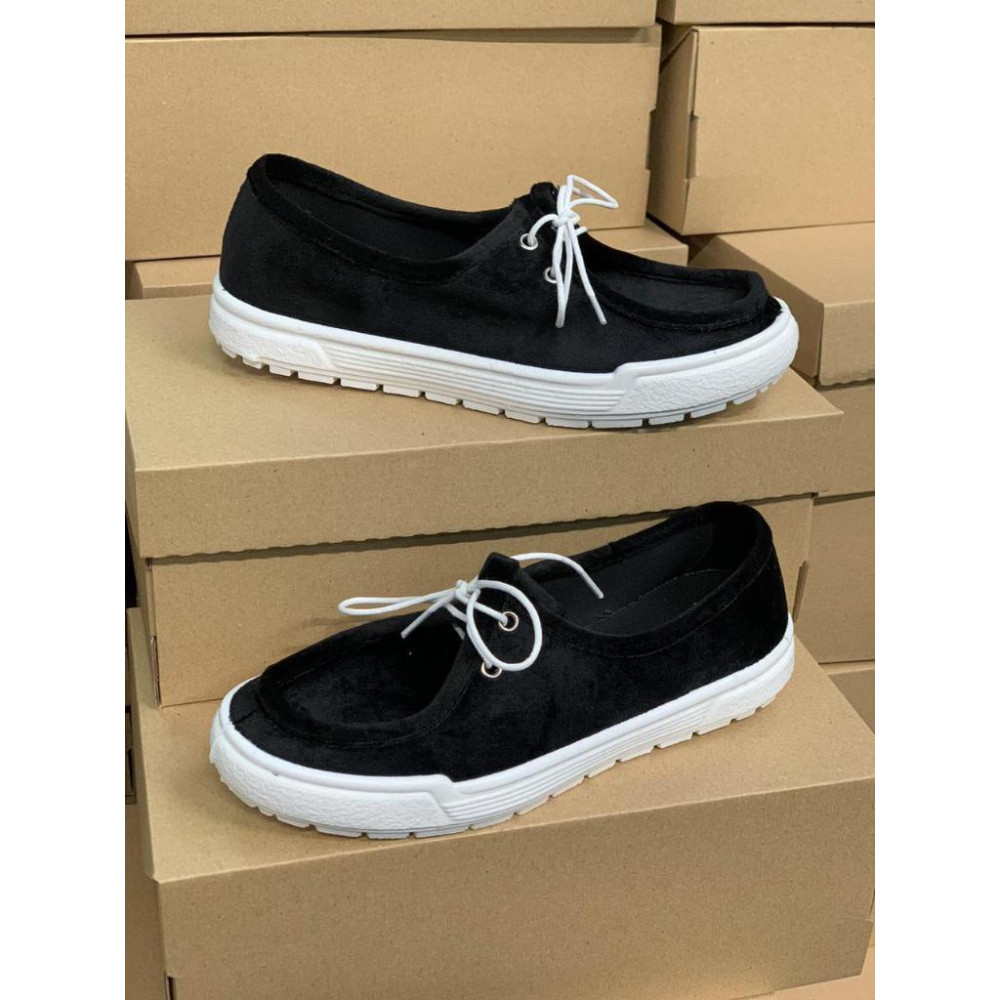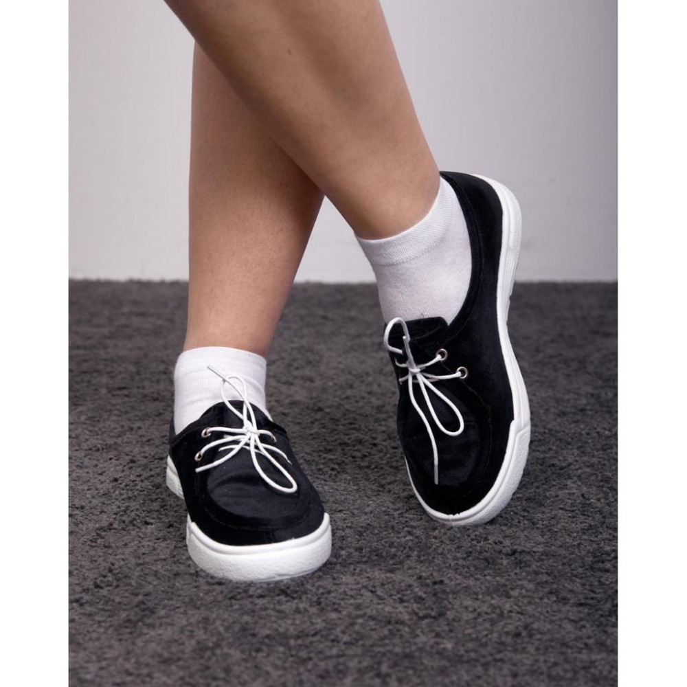 Женские мокасины MELANIA, Черные на белой подошве/велюр