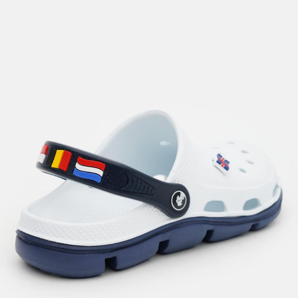 Сабо изготовлены из легкого и гипоаллергенного материала ЭВА, а декорированный пяточный ремешок - из ПВХ.