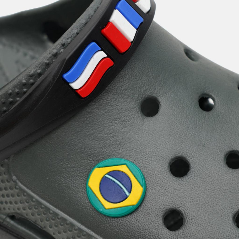 Перфорированный верх отлично вентилирует стопу, а перекидной ремешок надежно фиксирует обувь на ноге.