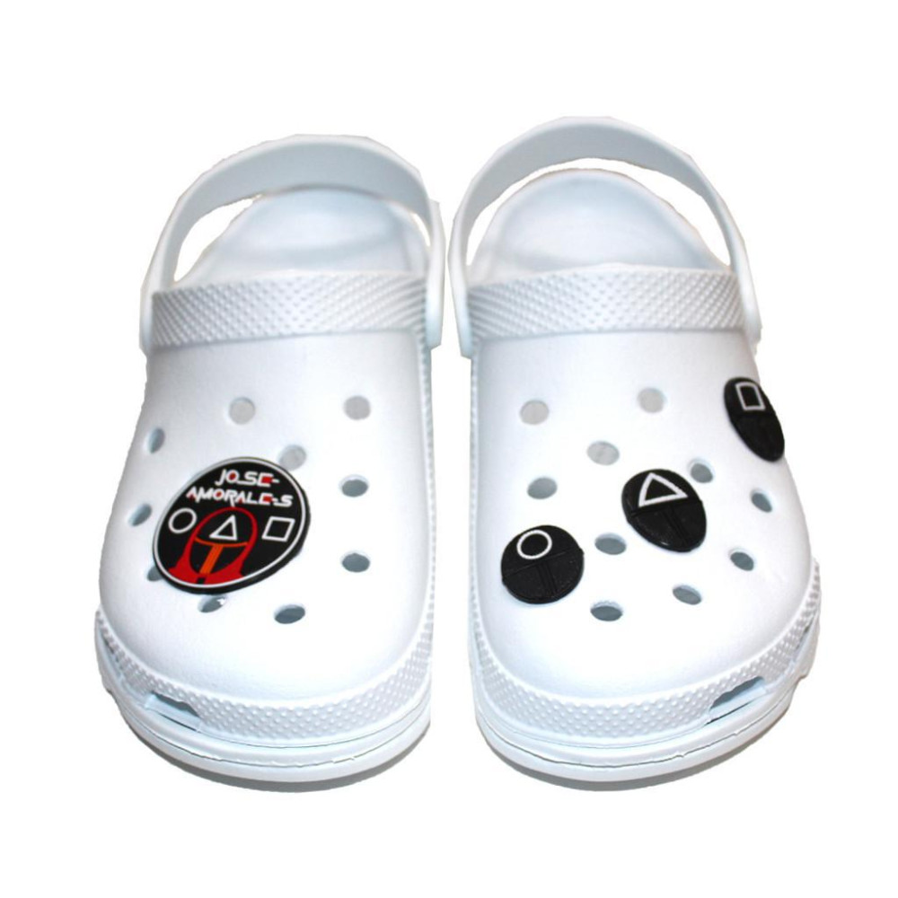 Сабо Jose Amorales со съемными тематическими джибитсами «Игра в кальмара» - стильная обувь для почитателей нашумевшего южнокорейского сериала.