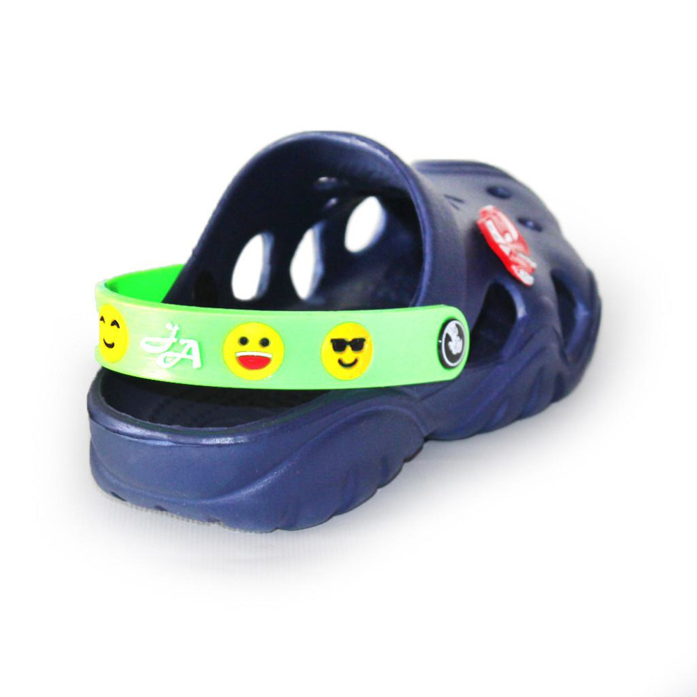 Фактические размеры стельки: 28р – 17,5-18см, 30р – 19-20см, 32р – 20,5-21см, 34р – 21,5-22см Изюминкой данной модели являются силиконовые шлейки, украшенные изображением смайликов, придающих изделию оригинальность.