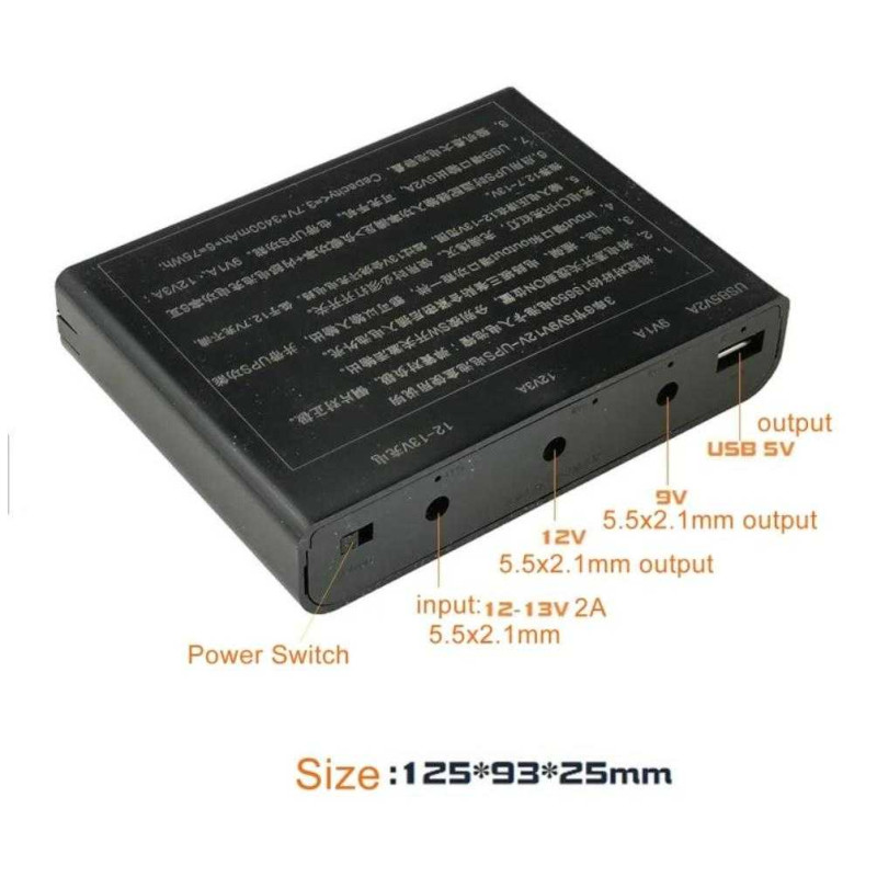 Выходы: USB 5V2A, 5.5мм*2,1мм 9V1A, 12V2A