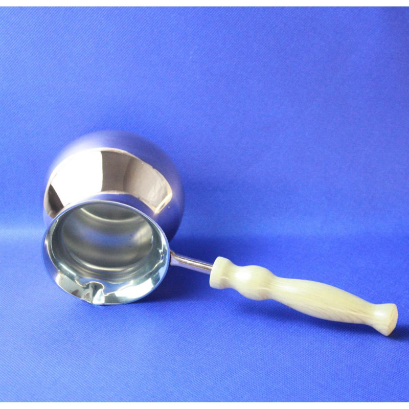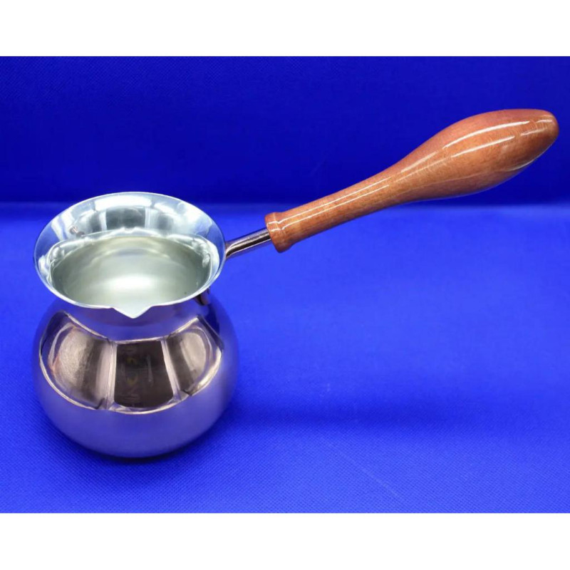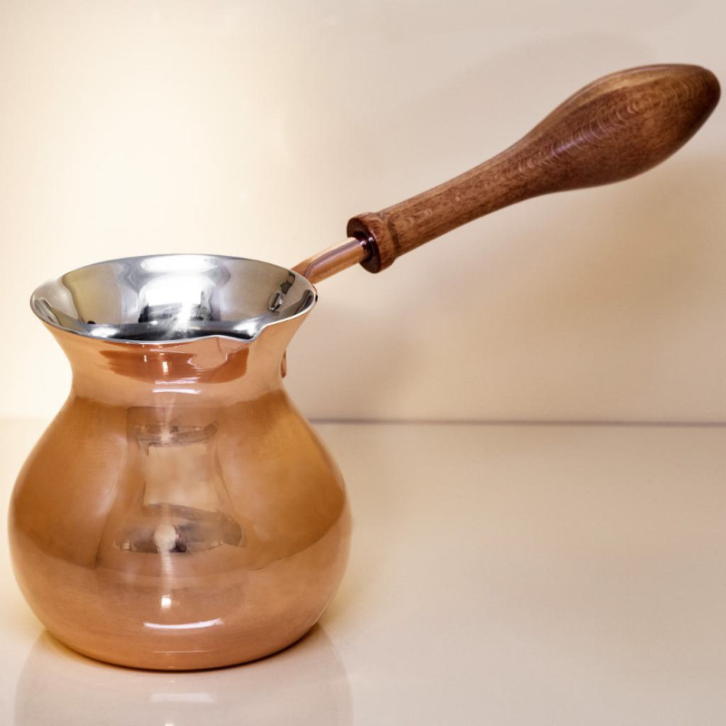 - Производство: турка изготовлена вручную, с использованием высококачественной меди толщиной 1,3-1,5 мм, с внутренним покрытием из пищевого олова. Это гарантирует долговечность и чистоту вкуса.