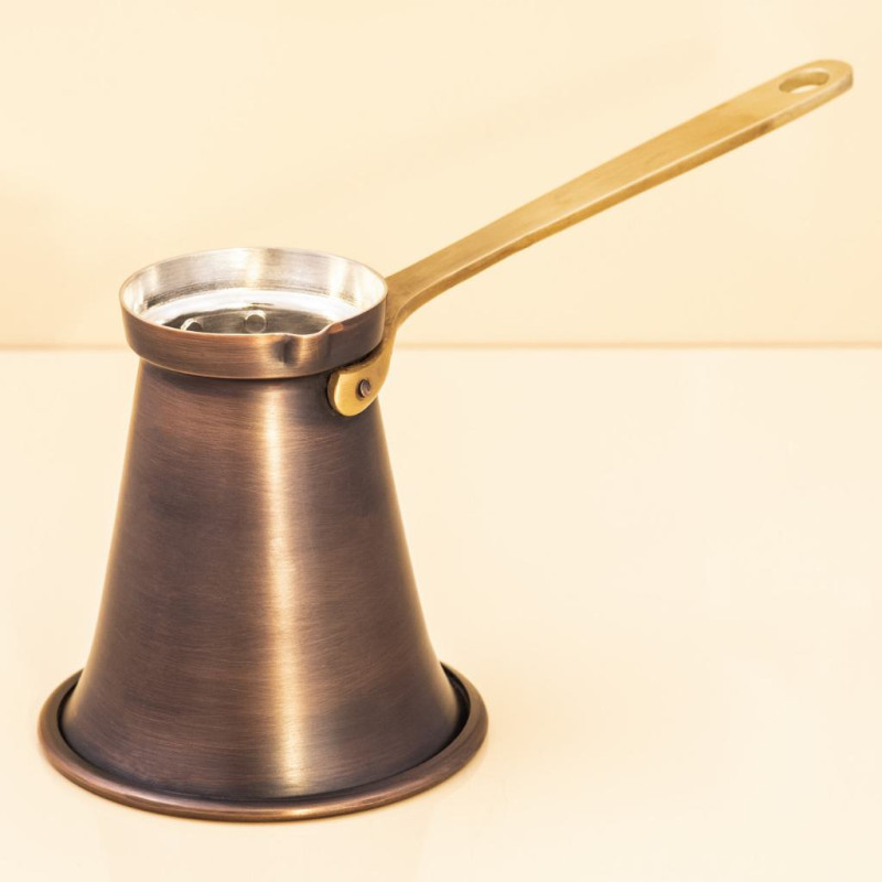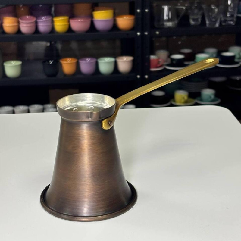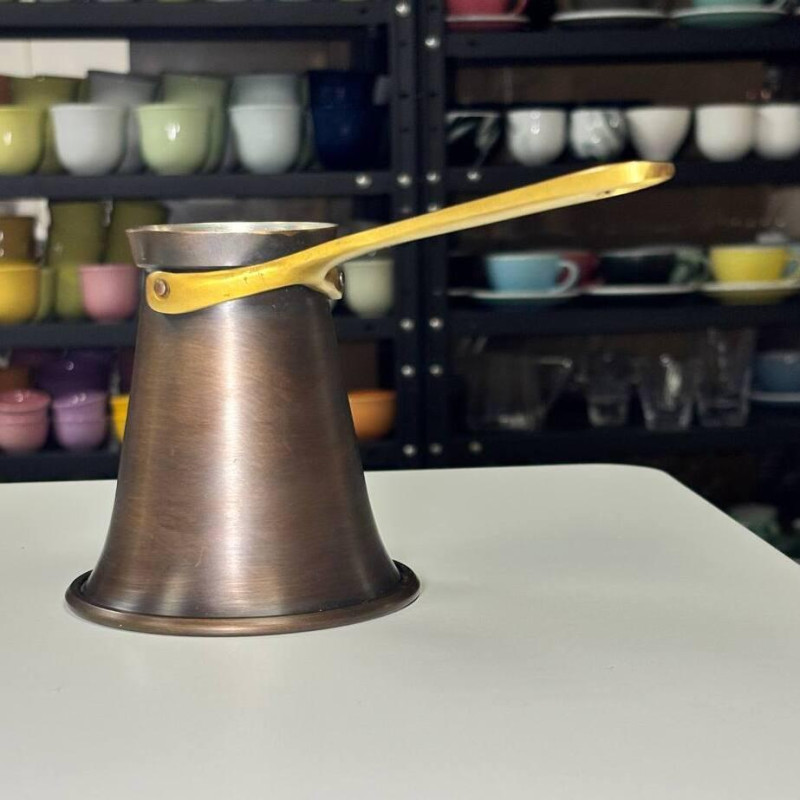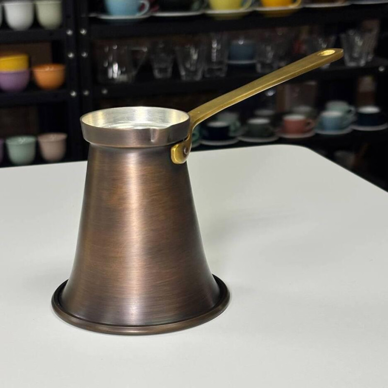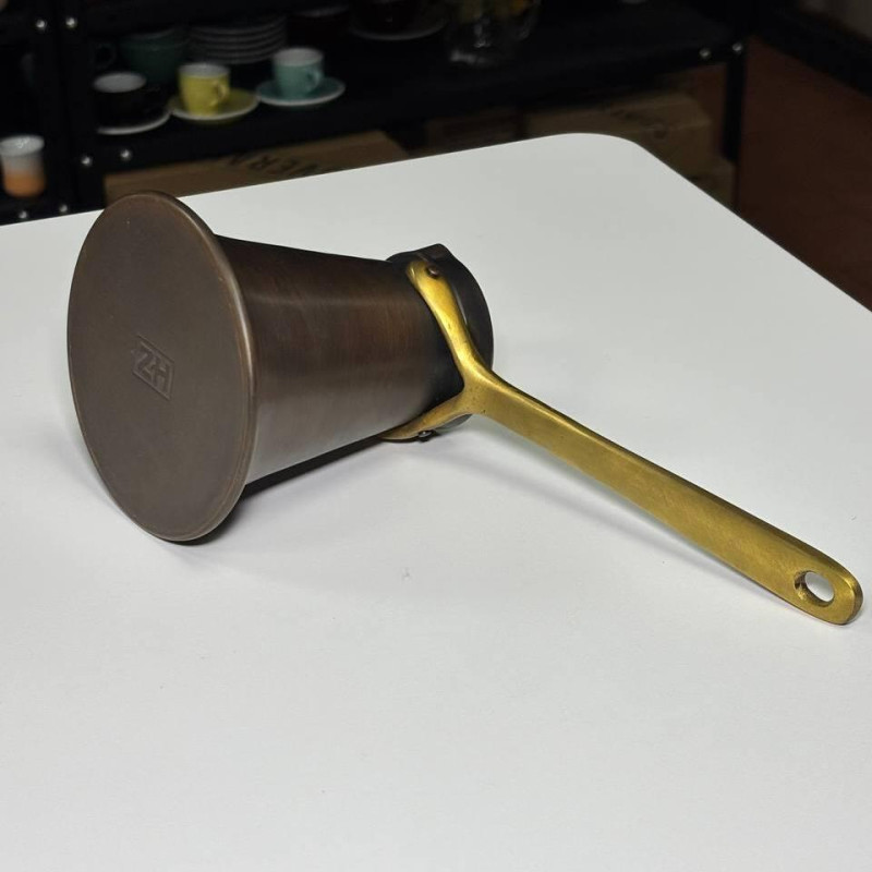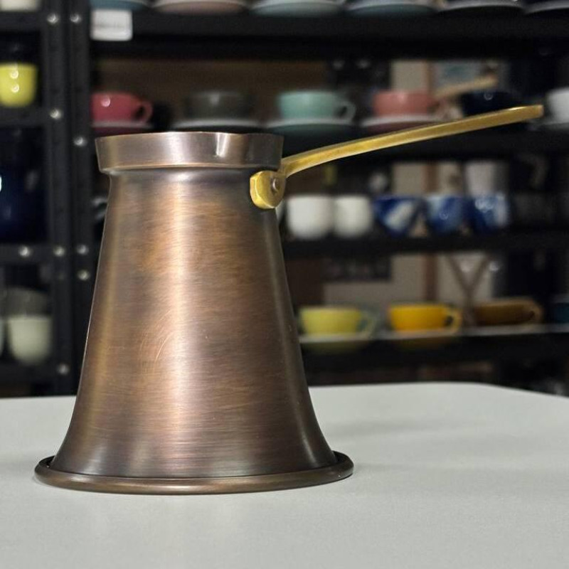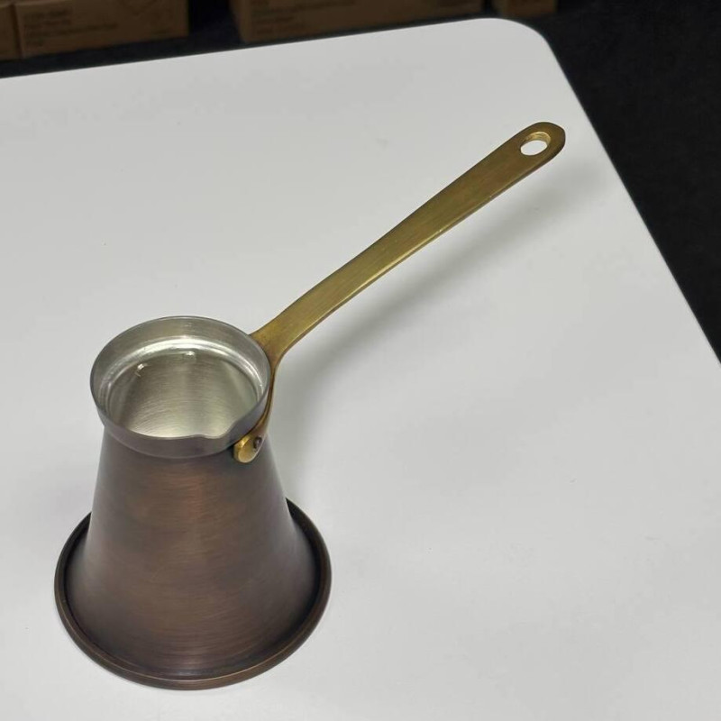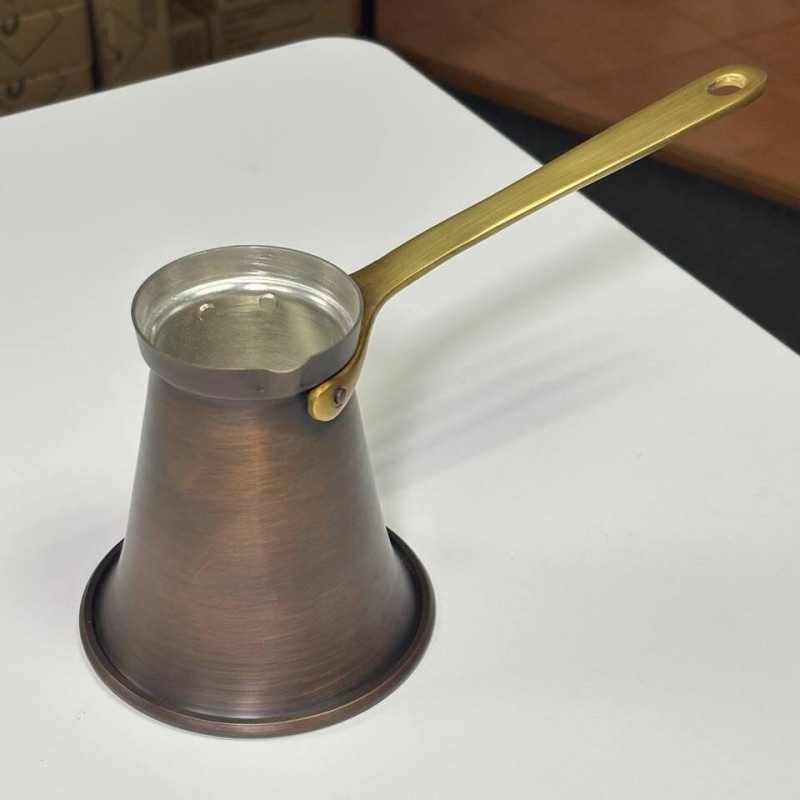 - Эстетика и практичность: Ручка из латуни добавляет элегантности и прочности, а патинированное покрытие придает турке уникальный внешний вид. Патина также защищает поверхность от внешних воздействий.