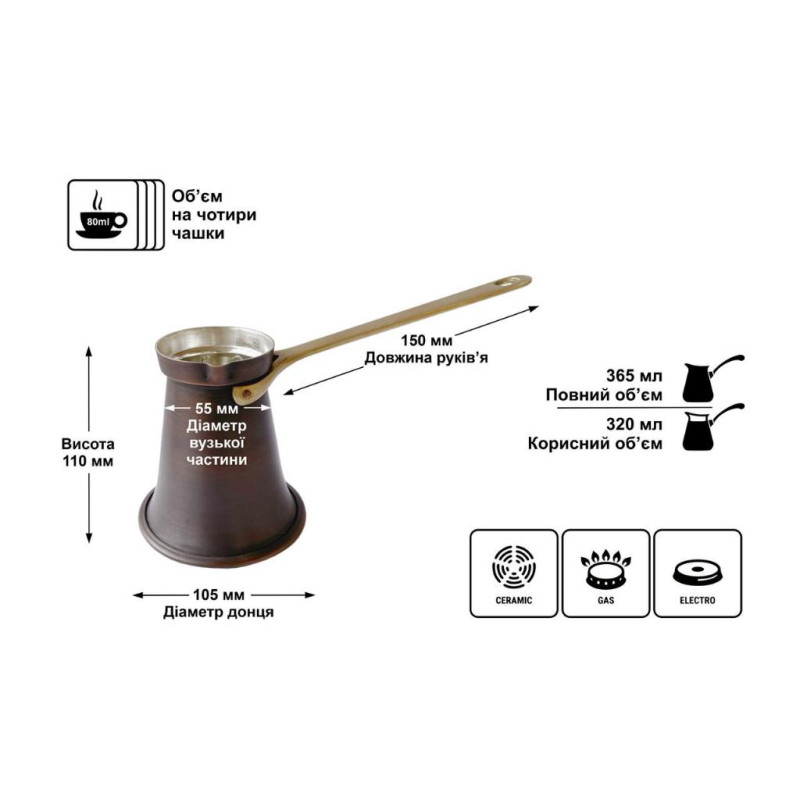 Характеристики медной турки