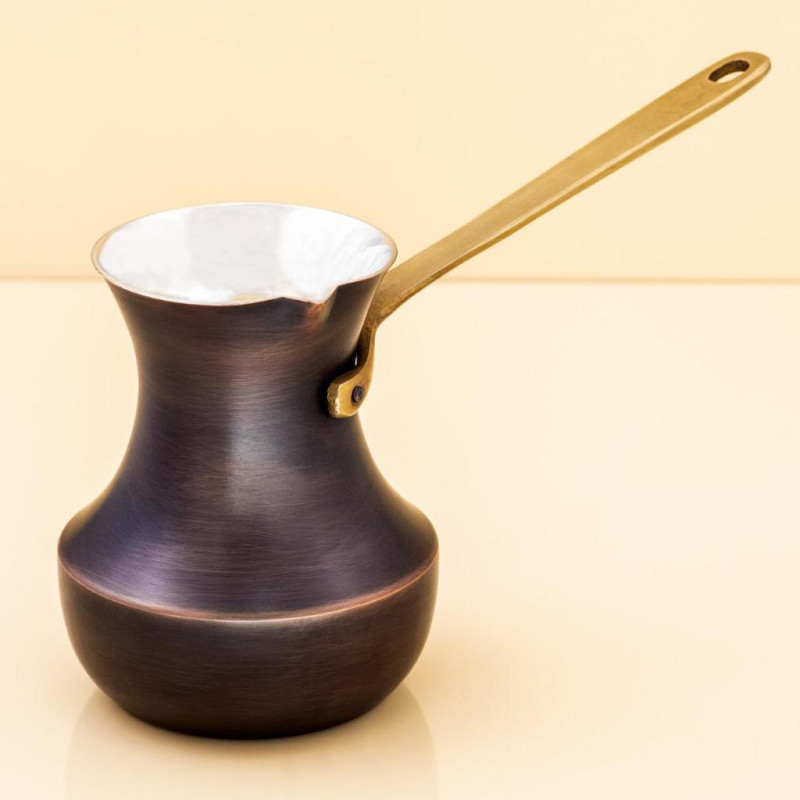 - Елегантний дизайн: Турка з патинованою зовнішньою поверхнею і латунною ручкою має стильний вигляд і стане чудовим аксесуаром для шанувальників кави.