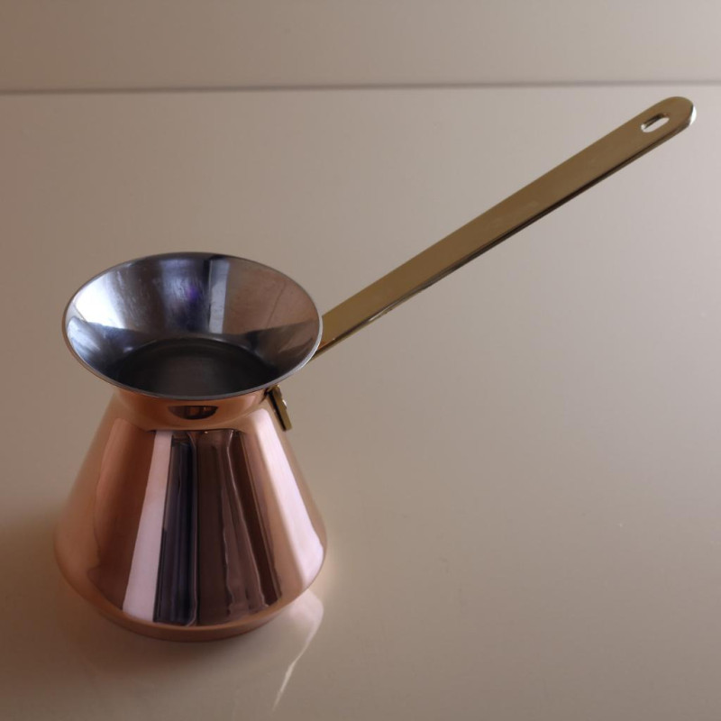 Завдяки суцільнотягнутій конструкції з міді та міцній латунній ручці джезва слугує довго, не перегрівається й зберігає смак напою.