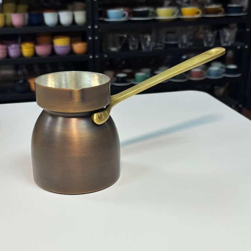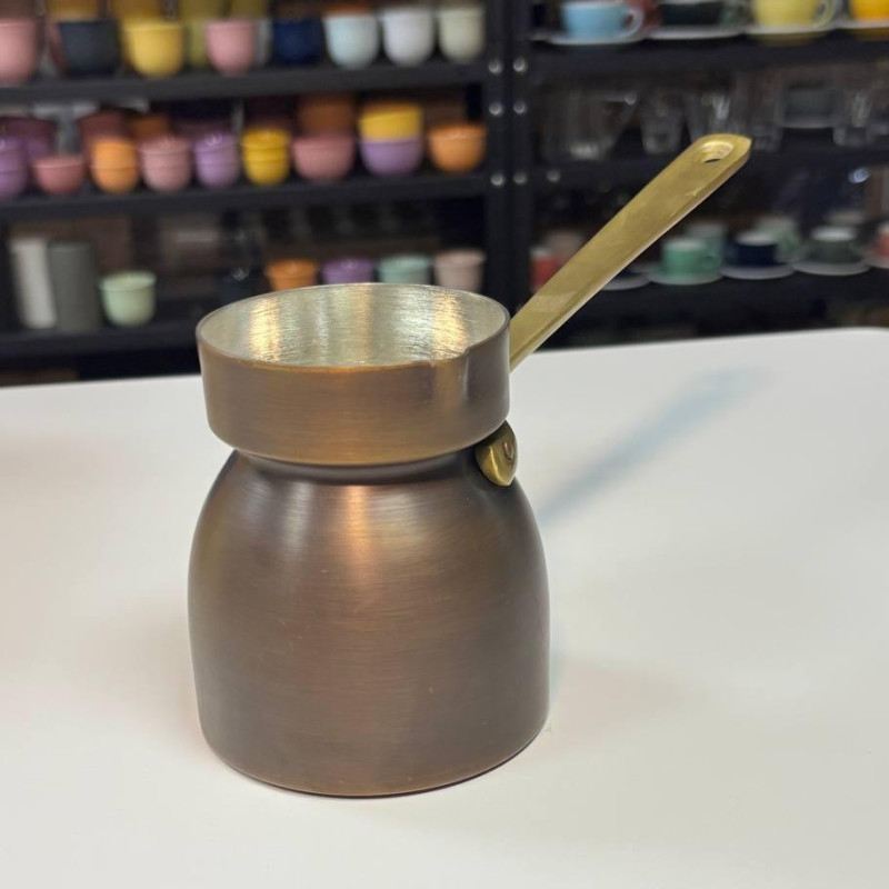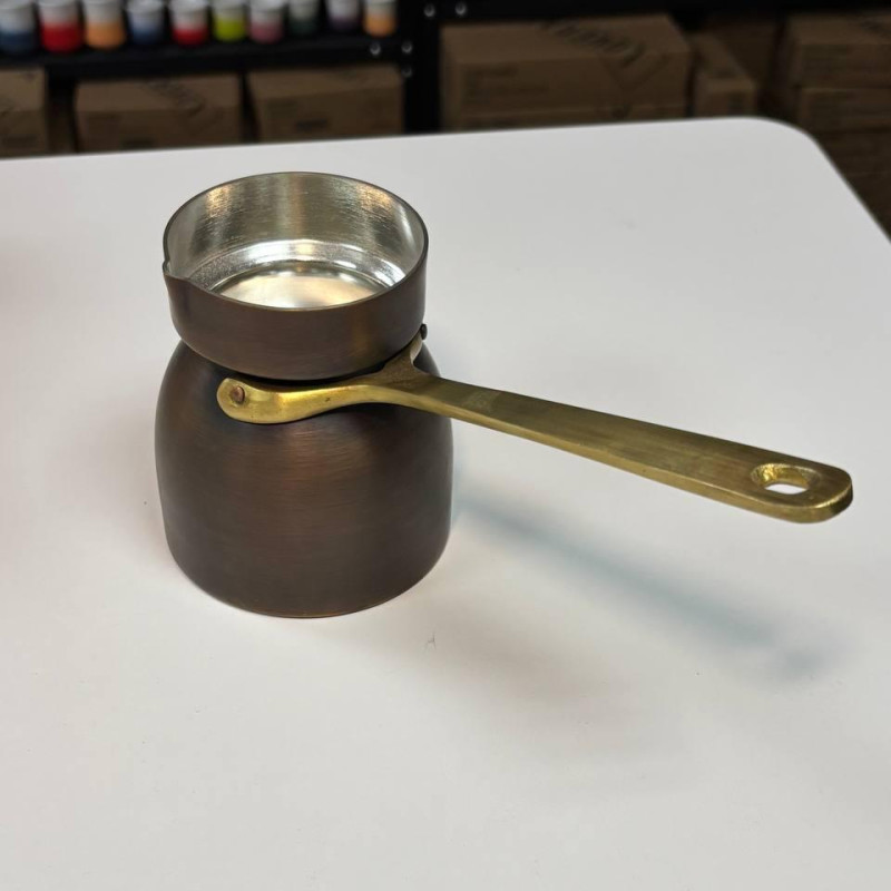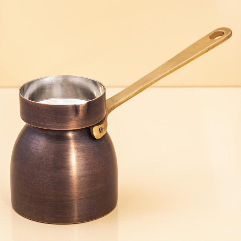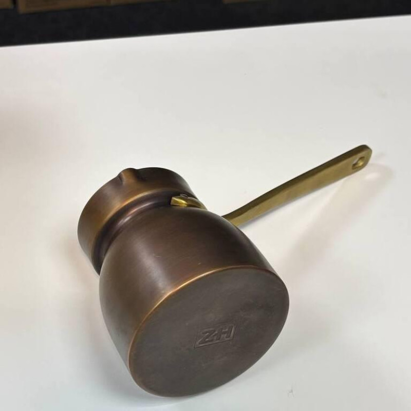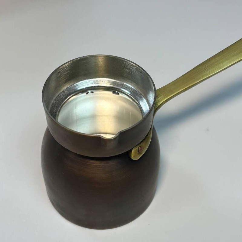 - Матеріал: Мідь (товщина стінок 1,5 мм) — забезпечує рівномірне нагрівання та тривале утримання тепла, що ідеально підходить для приготування кави.