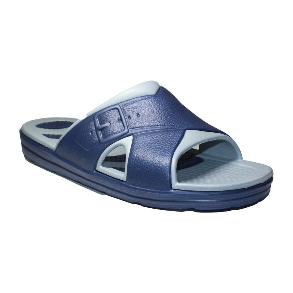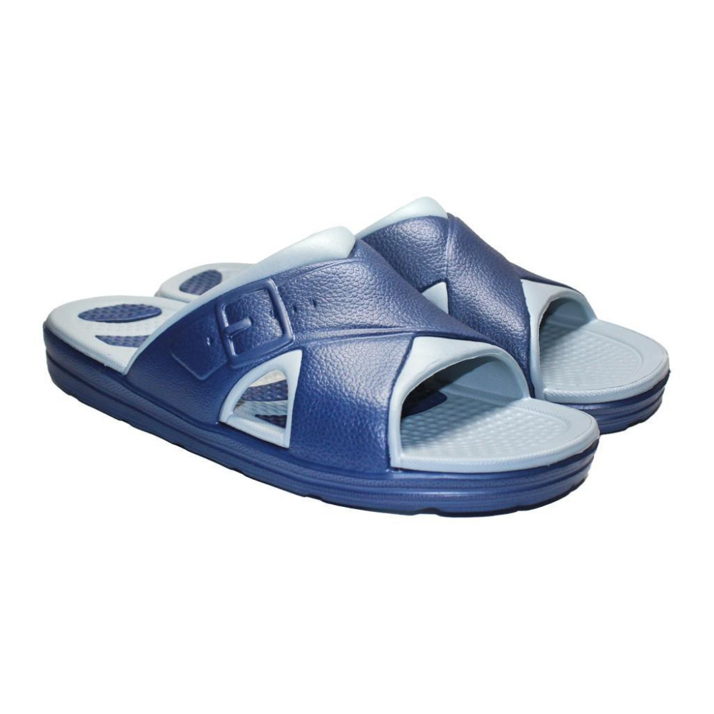 Фактические размеры стельки: 40р – 25 см, 41р – 25,5см, 42р – 26см, 43р – 26,5см, 44р – 28см, 45р – 29см Мужские шлепанцы изготовлены из современного полимера этиленвинилацетата (ЭВА).