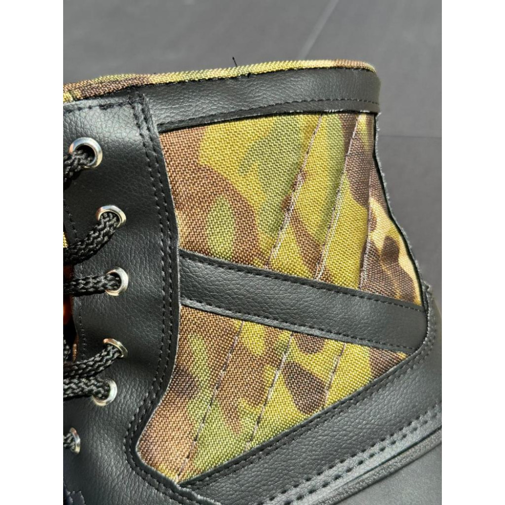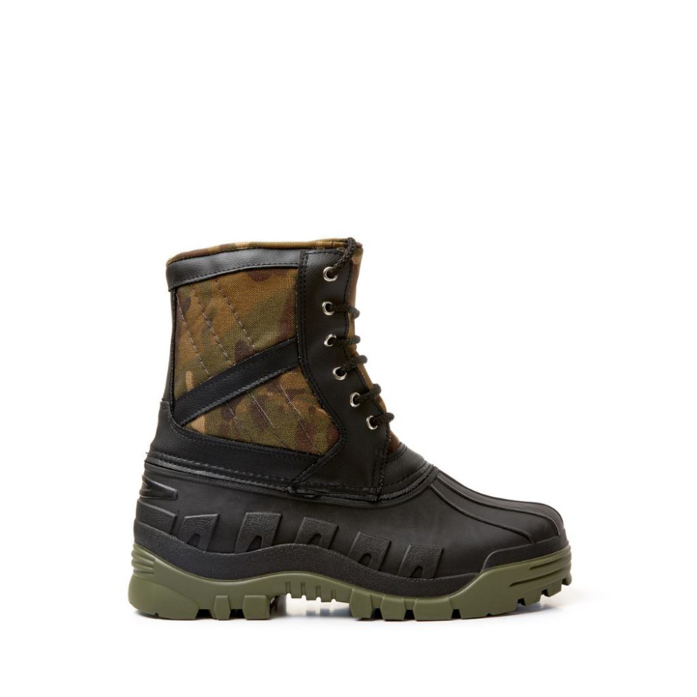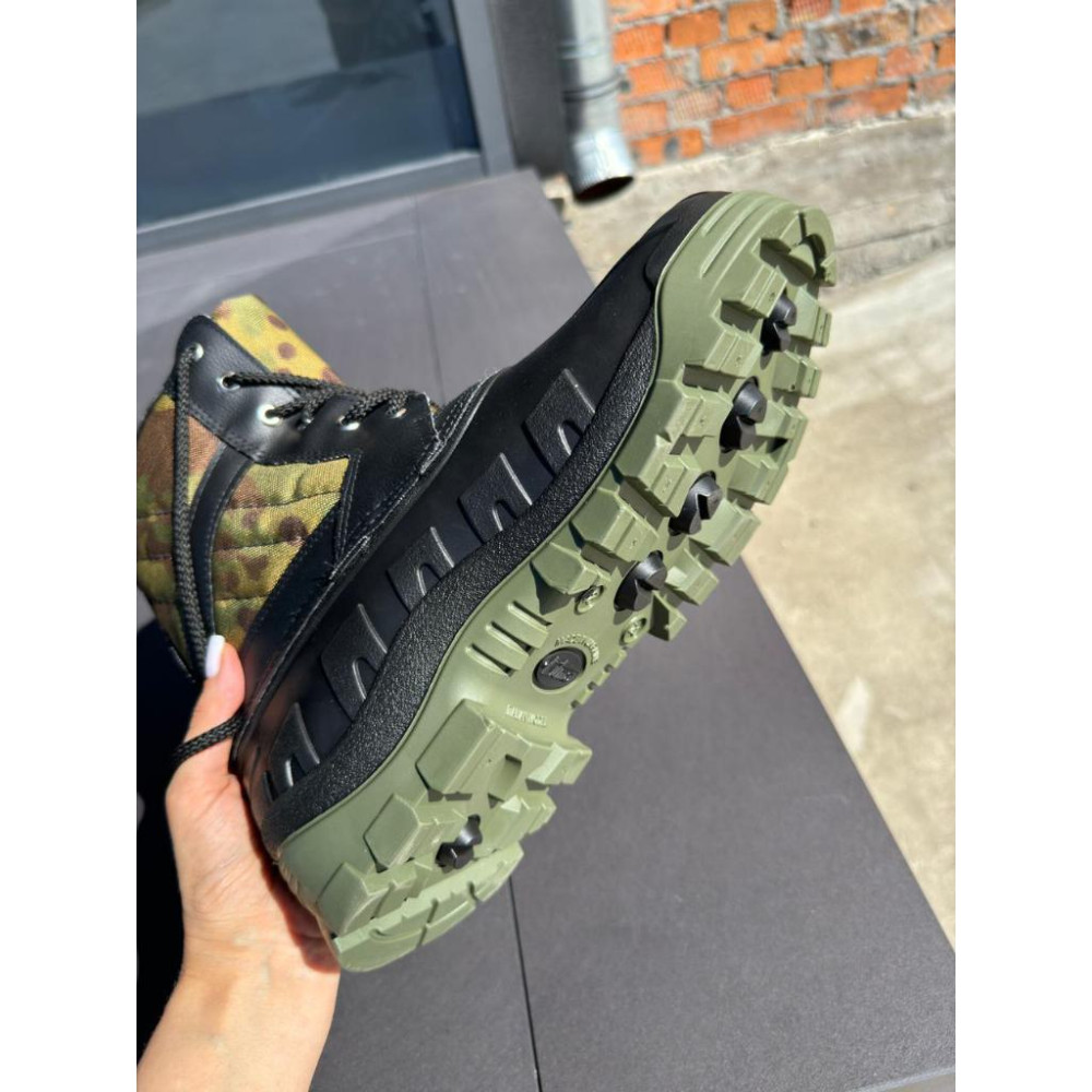 - Голенище изготовлено в комбинации двух плотных материалов (текстильного и кожзам) с водоотталкивающим покрытием.