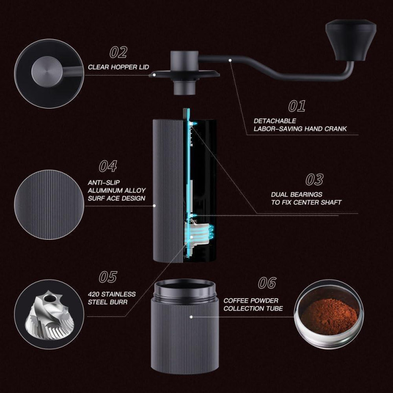 Ручна кавомолка JOQINEER зі сталевими жорнами (45 мм)
