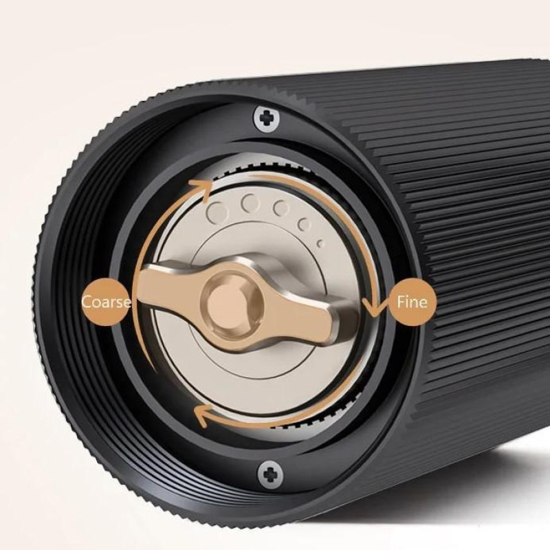 - Фіксована подвійна система підшипників для забезпечення навіть грубості вашої меленої кави