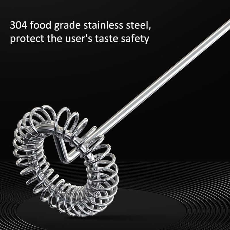 Невеликий електричний міксер має віночок із харчової неіржавкої сталі 304, яка не іржавіє й не піддається корозії під час впливу вологи. Очистьте> займище для кави з електроприводом, обертаючи спіральну головку вінчика, поки насадка занурена у воду.