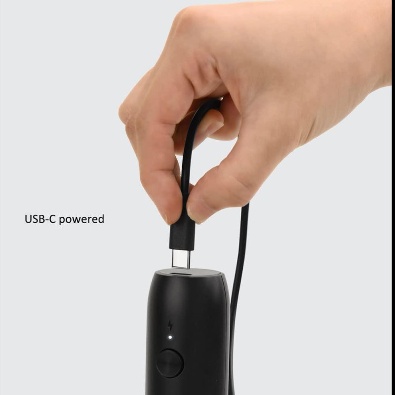 У спінювачі використовується вбудована батарея й зарядний кабель USB-C, що забезпечує додаткову зручність і заощаджує гроші з плином часу. Для повного заряджання вінчика матча потрібно 2,5 години, чого досить для подавання до 30 чашок піни.
