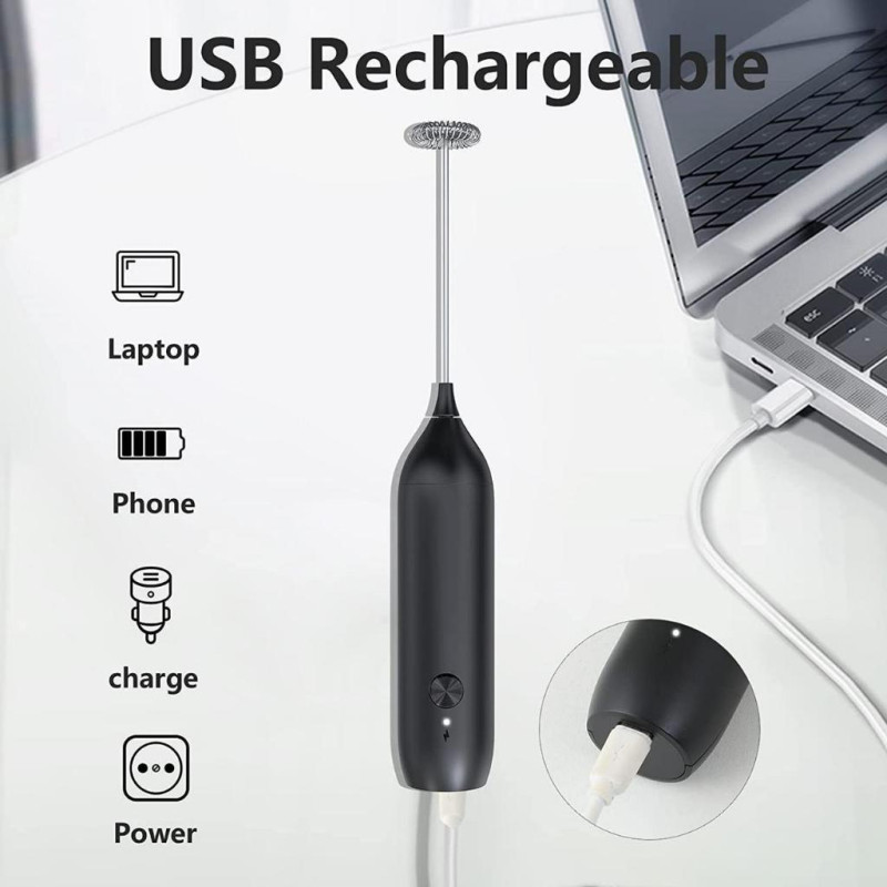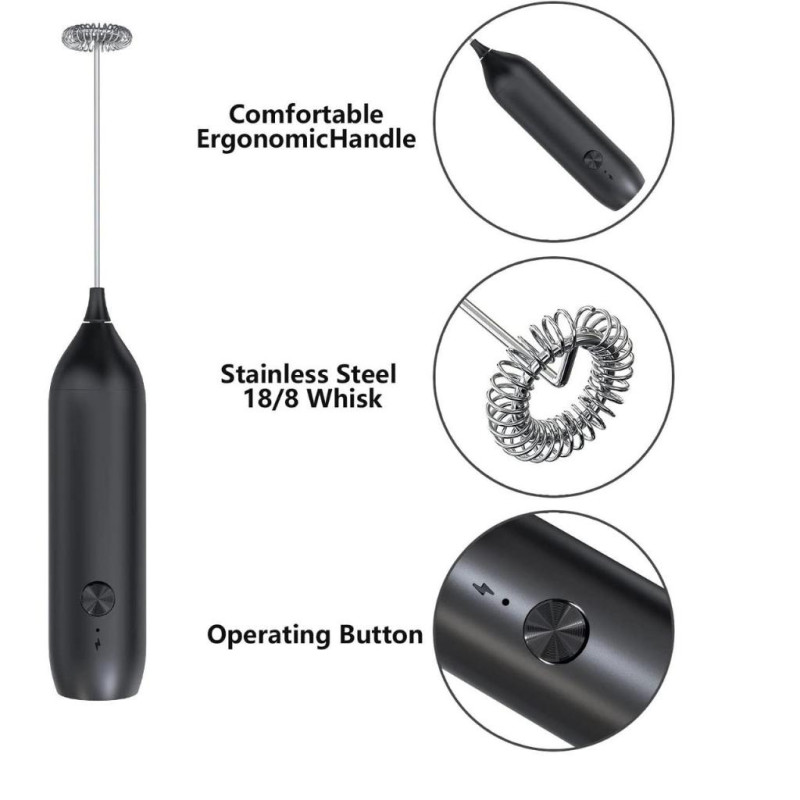 Цей портативний міксер для кави легкий і компактний, а конструкція із сенсорним введенням/випуском забезпечує надзвичайно ефективне спінювання напою за 30 секунд. Електричний мініміксер із віночком сумісний з усіма типами контейнерів і підходить для використання вдома та в поїздках.