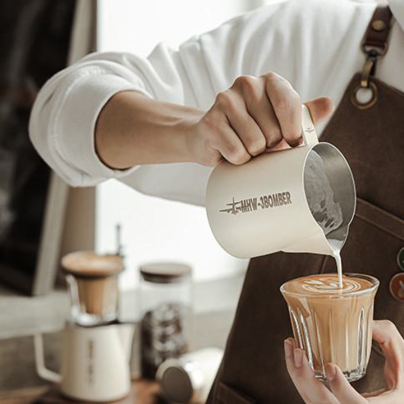 - Чудова форма: Форма посудини оптимальна для точного контролю подавання молока та зручності наливання, що робить малювання легшим і плавнішим.