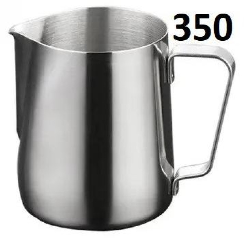 Пітчер 350 мл (Металік) — це універсальний інструмент для збивання молока та створення латте-арт малюнків. Завдяки формі носика та зручній ергономічній ручці, він забезпечує точний і контрольований налив молочної піни у чашку.