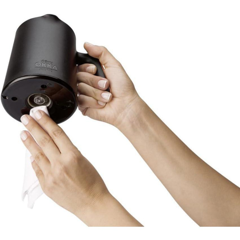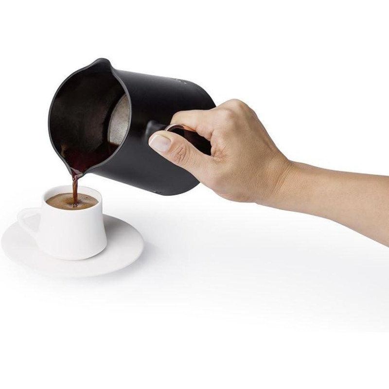 - Arzum OKKA Minio обеспечивает комфортное использование благодаря кофейнику с двумя носиками, который можно держать как правой, так и левой рукой.