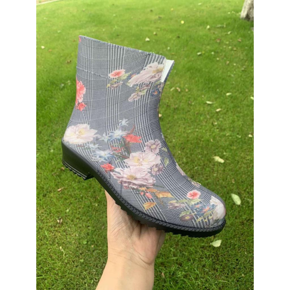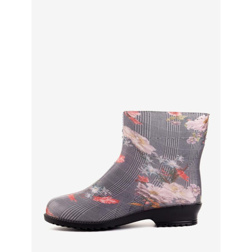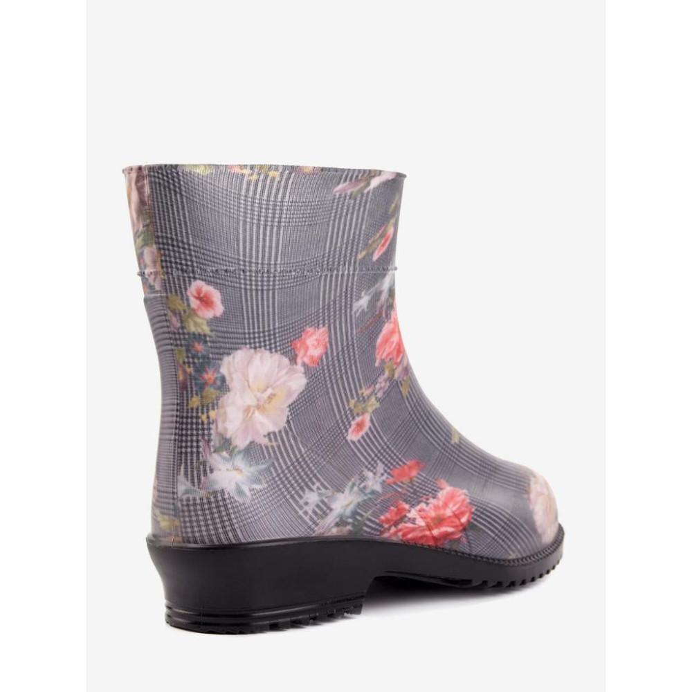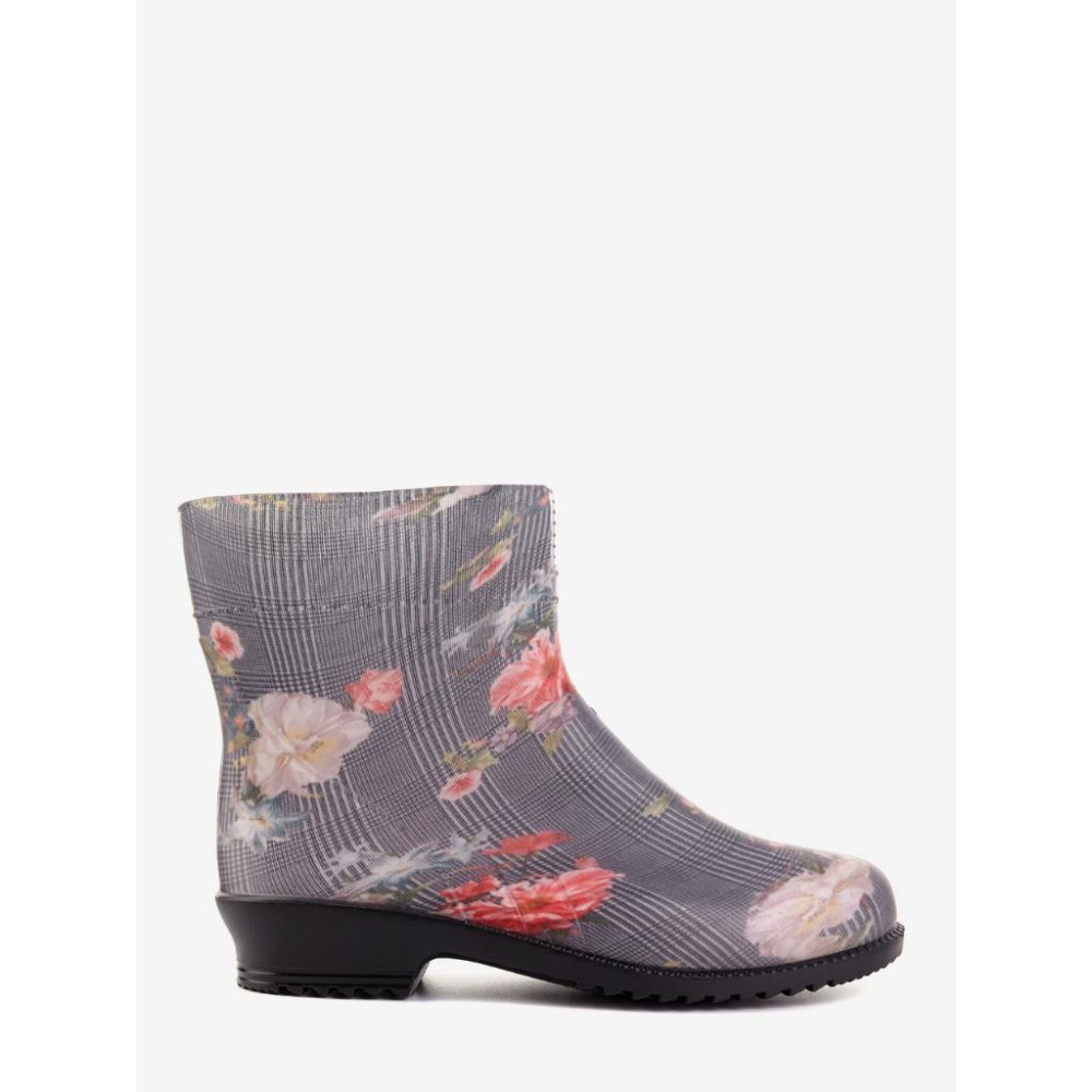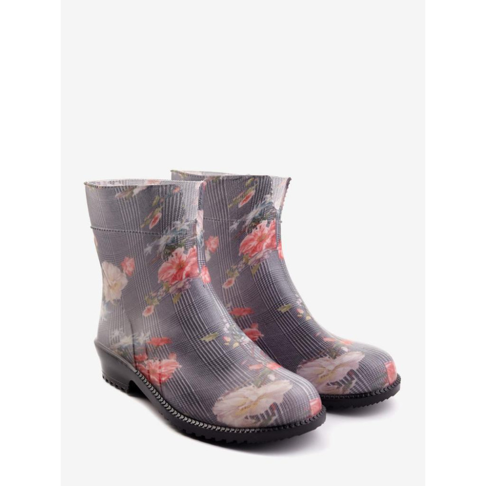 Жіночі напівчоботи гумові Квіти на сірій клітинці
