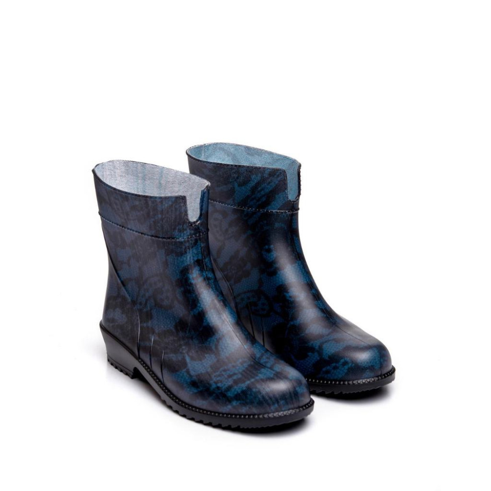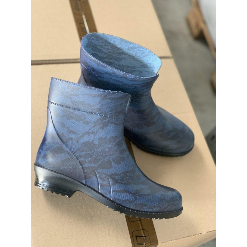 Жіночі напівчоботи гумові Мереживо на синьому