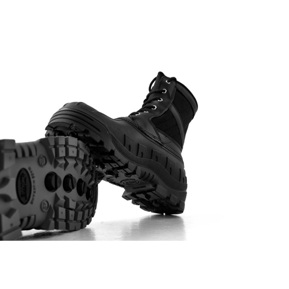 - Підошва рифлена, стійка до стирання, протистоїть ковзанню на слизьких поверхнях. Технологія лиття низу взуття та набір пакету товщини підошви, створює комфорт при ходьбі, та запобігає продавлюванню при нерівному рельєфі.