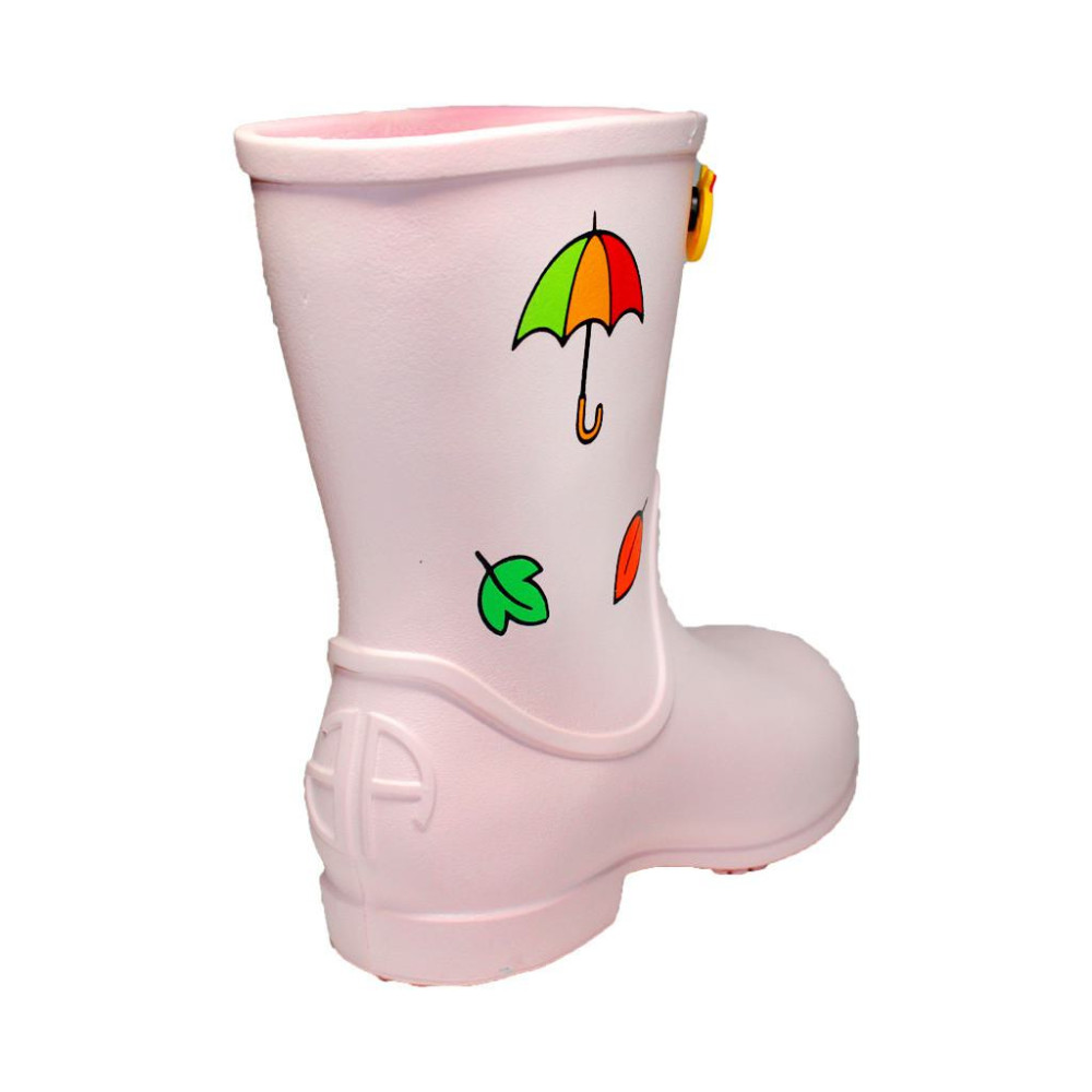 Особенность этой модели — разноцветные наклейки с зонтиками и листочками, которые делают обувь еще ярче и привлекательнее для детей.
