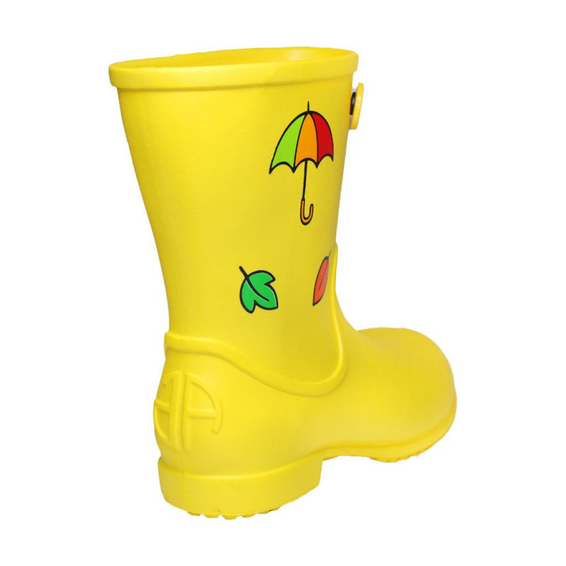 Особенность этой модели — разноцветные наклейки с зонтиками и листочками, которые делают обувь еще ярче и привлекательнее для детей.