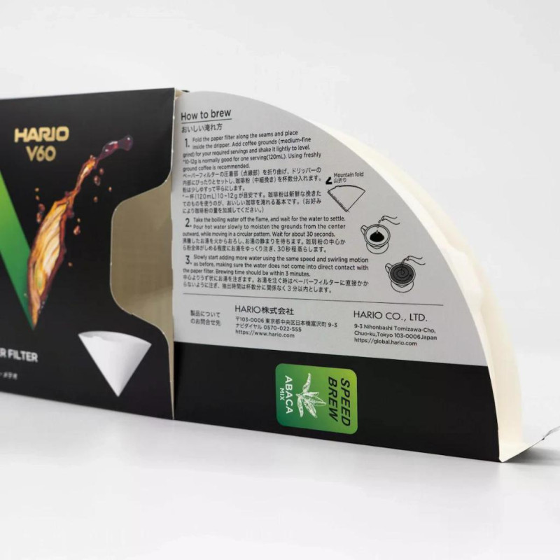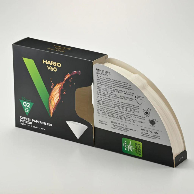 Hario V60 Meteor — інноваційні паперові фільтри, створені спеціально для заварювання ексклюзивної кави та спешелті. Завдяки покращеній конструкції й особливій структурі паперу, вони забезпечують втричі вищу швидкість потоку , порівнюючи зі стандартними фільтрами V60. Це дає змогу використовувати тонший помел і розкривати складний смаковий профіль кави ще глибше.